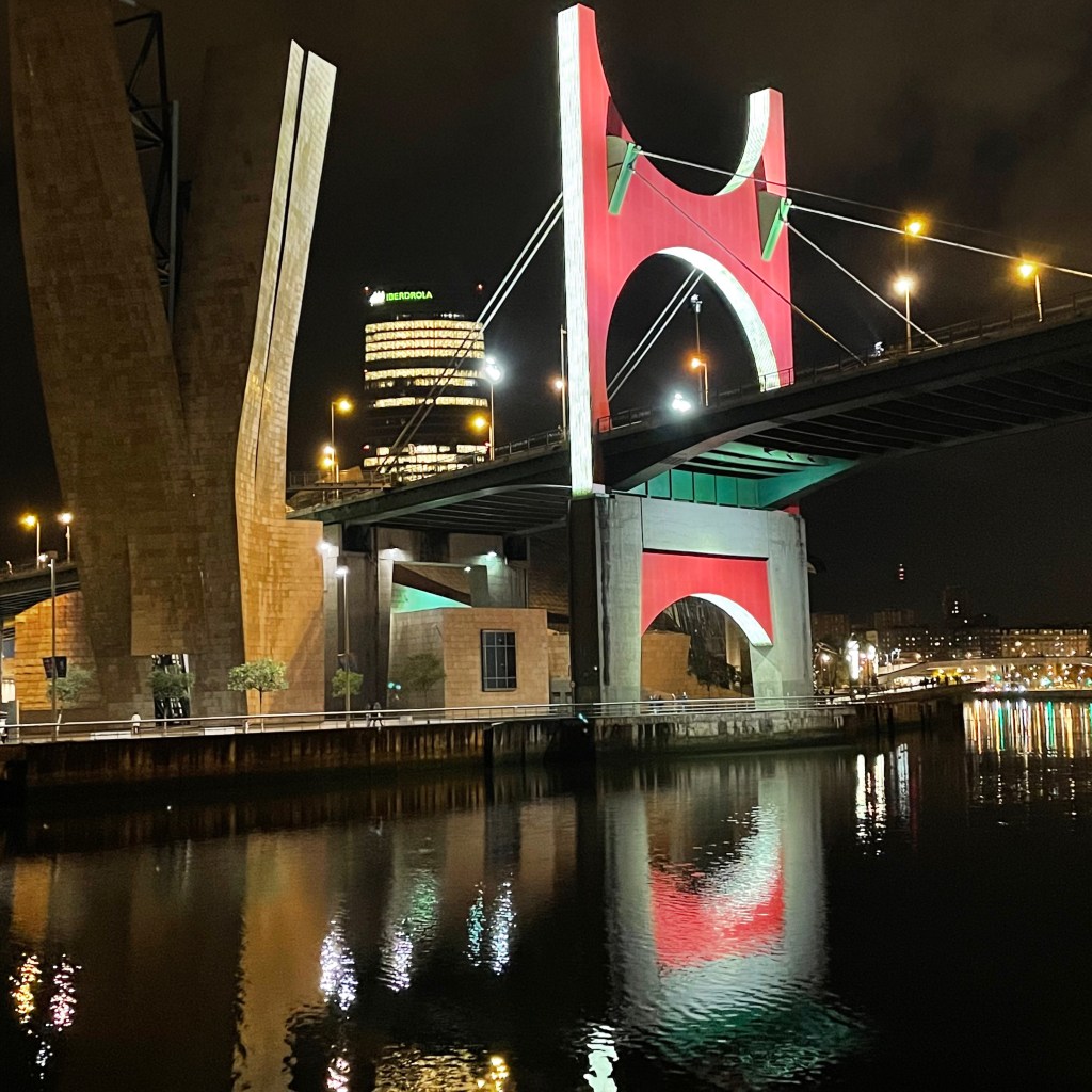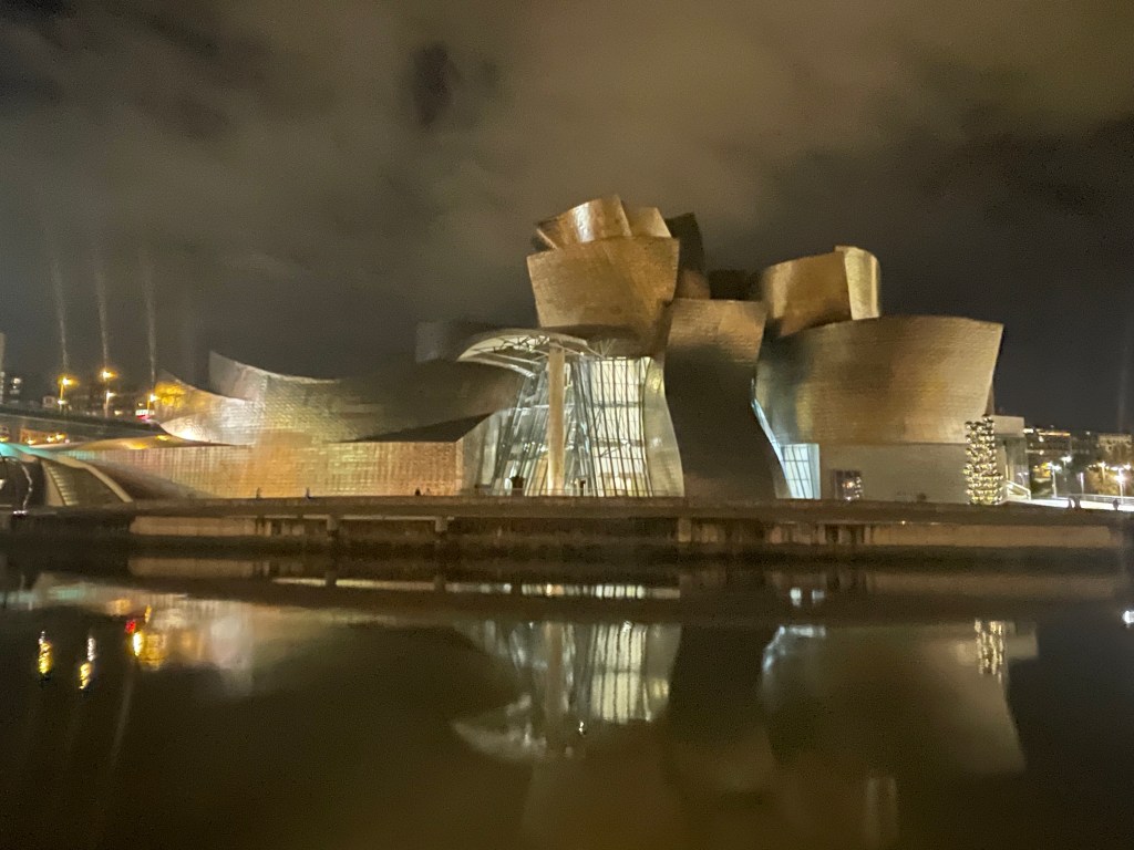 The bridge I mentioned coming in from the airport runs along the side of the Guggenheim and again at night the lights make it look pretty spectacular. I hope they have energy saving lights!