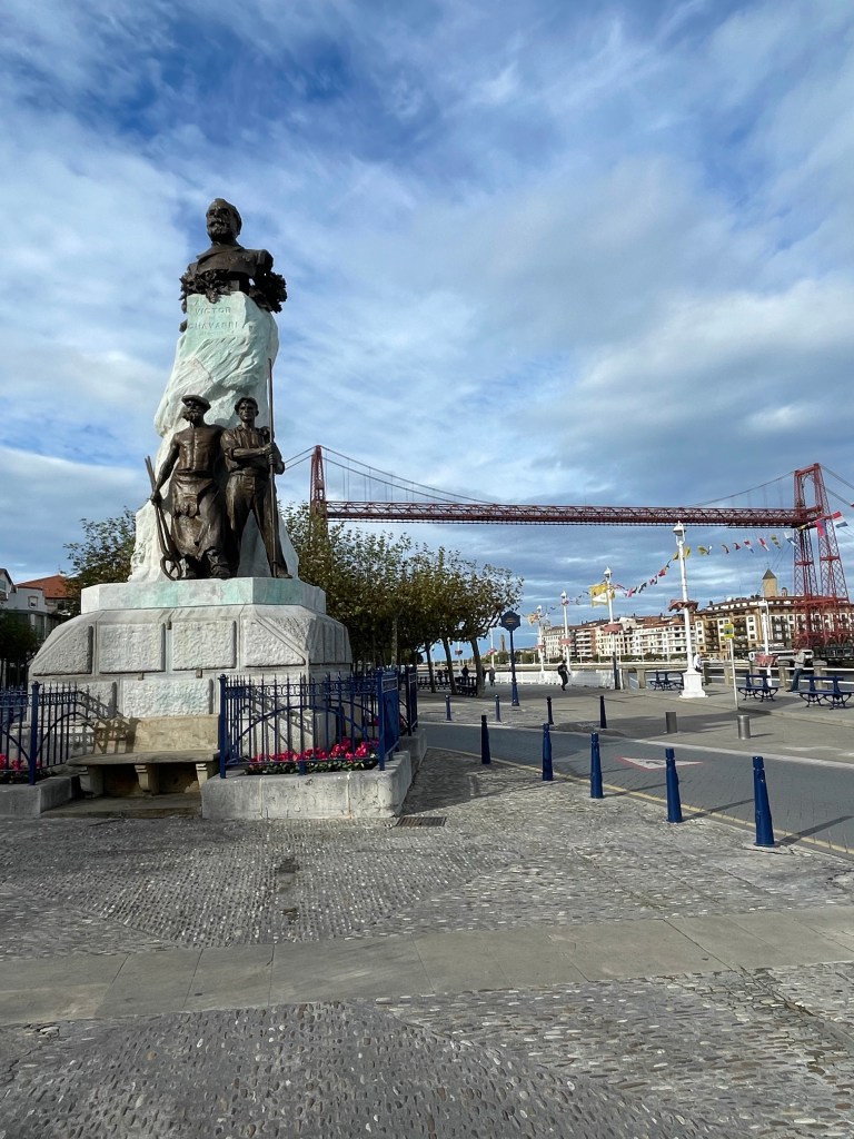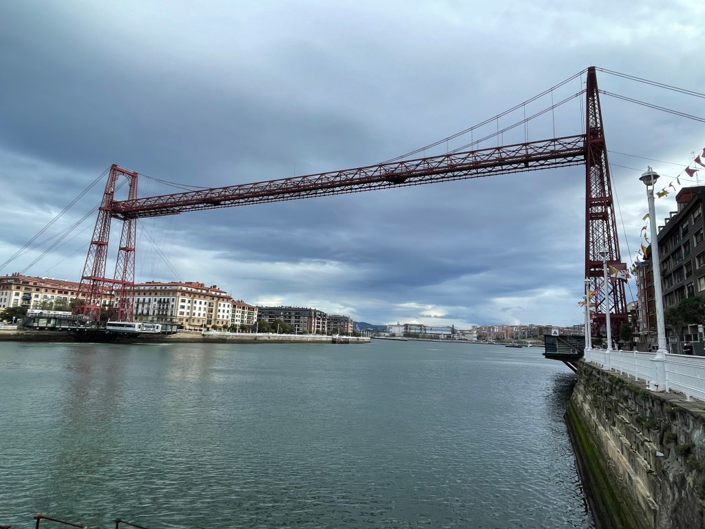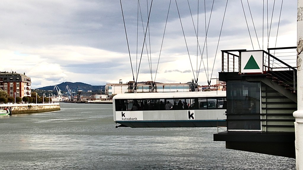 I am surprised at how many Unesco World Heritage sites there are and how varied they are too. Spain has 49 sites and one is here in the Basque country ~ The Vizcaya bridge. It’s a transporter bridge and the worlds oldest, having been built in 1893. It transports both vehicles and foot passengers across the river. Bilbao was a major exporter of iron and the structure was the first of its kind to use a combination of iron and new steel,cables. The carriage is called a gondola ~ no idea why. ~ no serenading from me in a stripey top and a funny hat _ and carries six cars and a load of pedestrians. There is also a lift to the upper platform where you can walk across. Sadly [not] today was too windy. I think I would have had issues. Major issues.