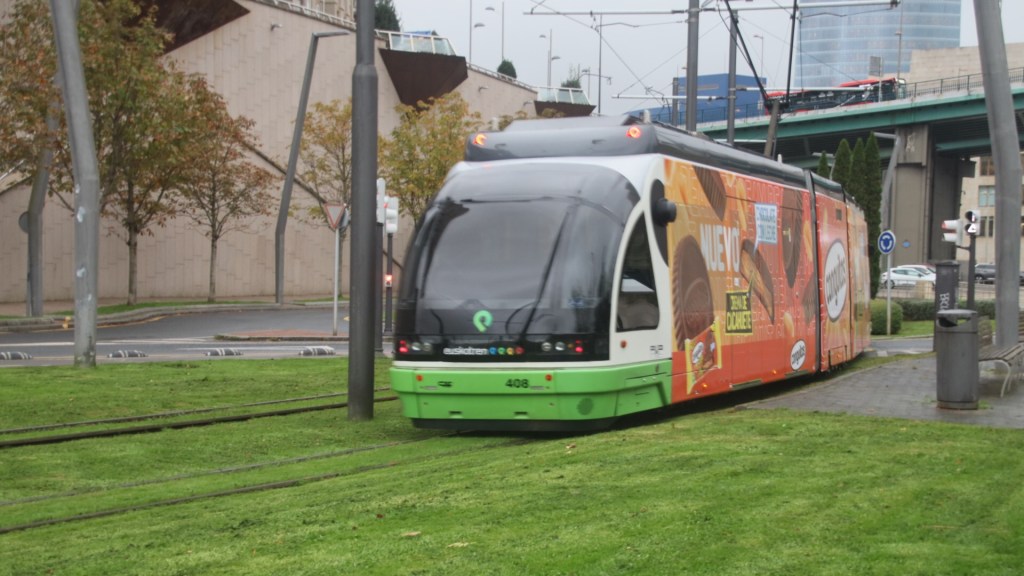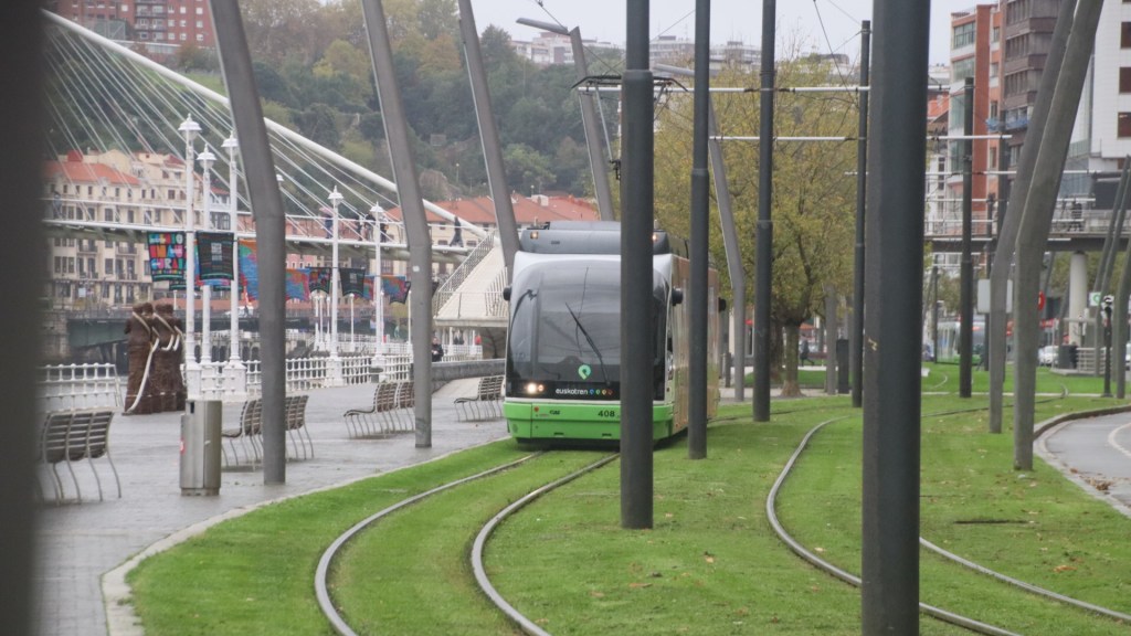Is this what they mean by green energy! Bilbao tram runs over the greenest grass I’ve seen and it’s real. I went back and checked. The trams run around the side Guggenheim through trees and over grass and it’s a pretty cool sight. Although without my glasses on and no sign of a tram I would have walked across the grass not knowing that there were tracks.