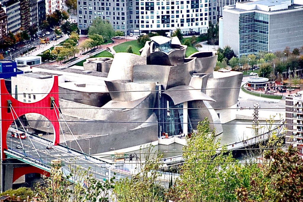 The bus into the city was. Fast. Very fast. And all for €3. ( you can’t get a Barik until you are at a metro); And a spectacular view of the Guggenheim as the bus hurtled over the bridge Opened in 1997 ( the museum. Not the bridge) it is a stunning piece of work by the Canadian ~ American architect Frank Gehry. I didn’t realise that the building is featured in a James Bond film ~ The world is not enough. But to be fair it’s not a Bond film I remember. Or the theme tune. I’ve also read that Mariah Cary used various locations at the museum for her video Sweetheart. I’ve just had a look. Maybe I’ll just have to copy some of the poses in the video. And mime. I didn’t.