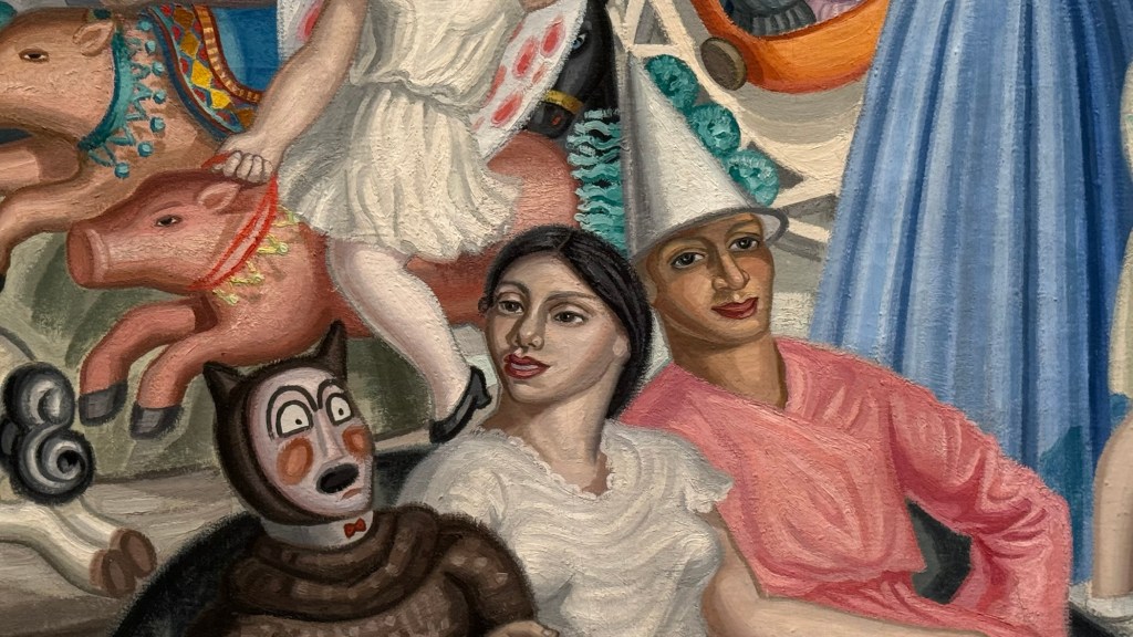 I liked these ~ an exhibition called masking identities. An interesting collection. Big. Bright and interesting. Not so the next painting which I just don’t get. No doubt someone will. But it’s not me.