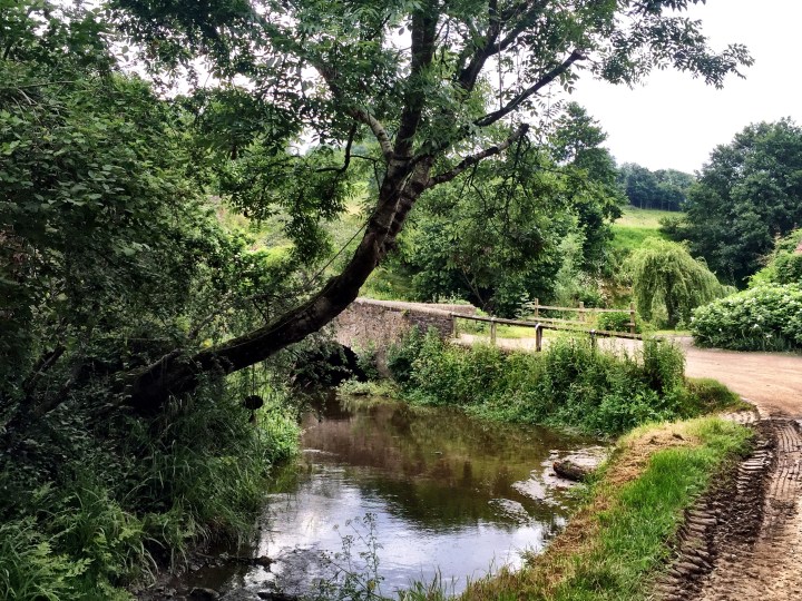 The river at the back of the cottage looked lovely early this morning. I disturbed the Heron – unintentionally and saw him/her take flight over a neighbours bridge. Thankfully I had my phone to catch the pic