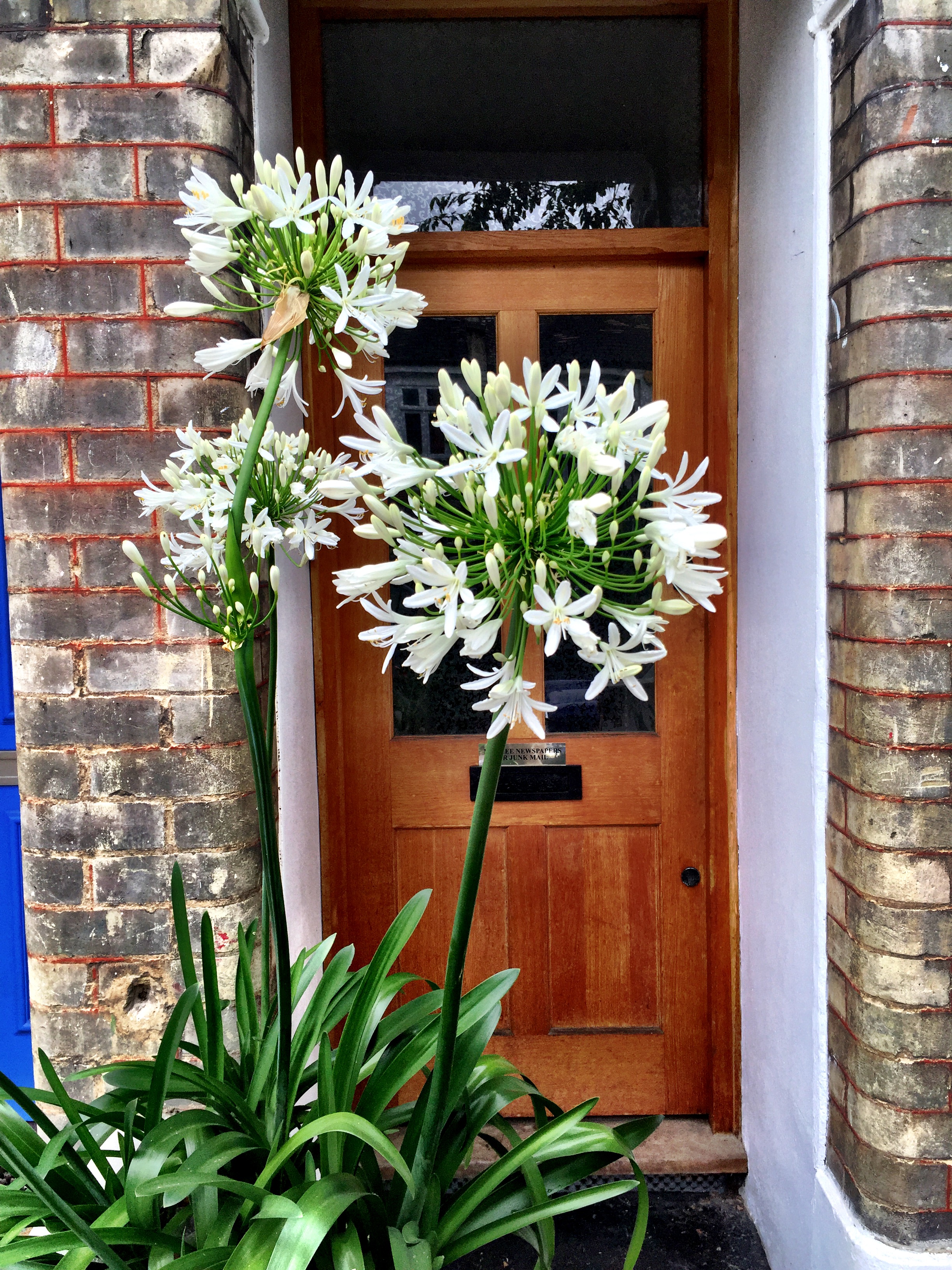 In London the agapanthus are simply stunning. Big fat white ones bought at Columbia road Market for less than a tenner. Tree ferns with slowly unfurling fronds. Very different to our Somerset garden. London is a courtyard and small front garden.