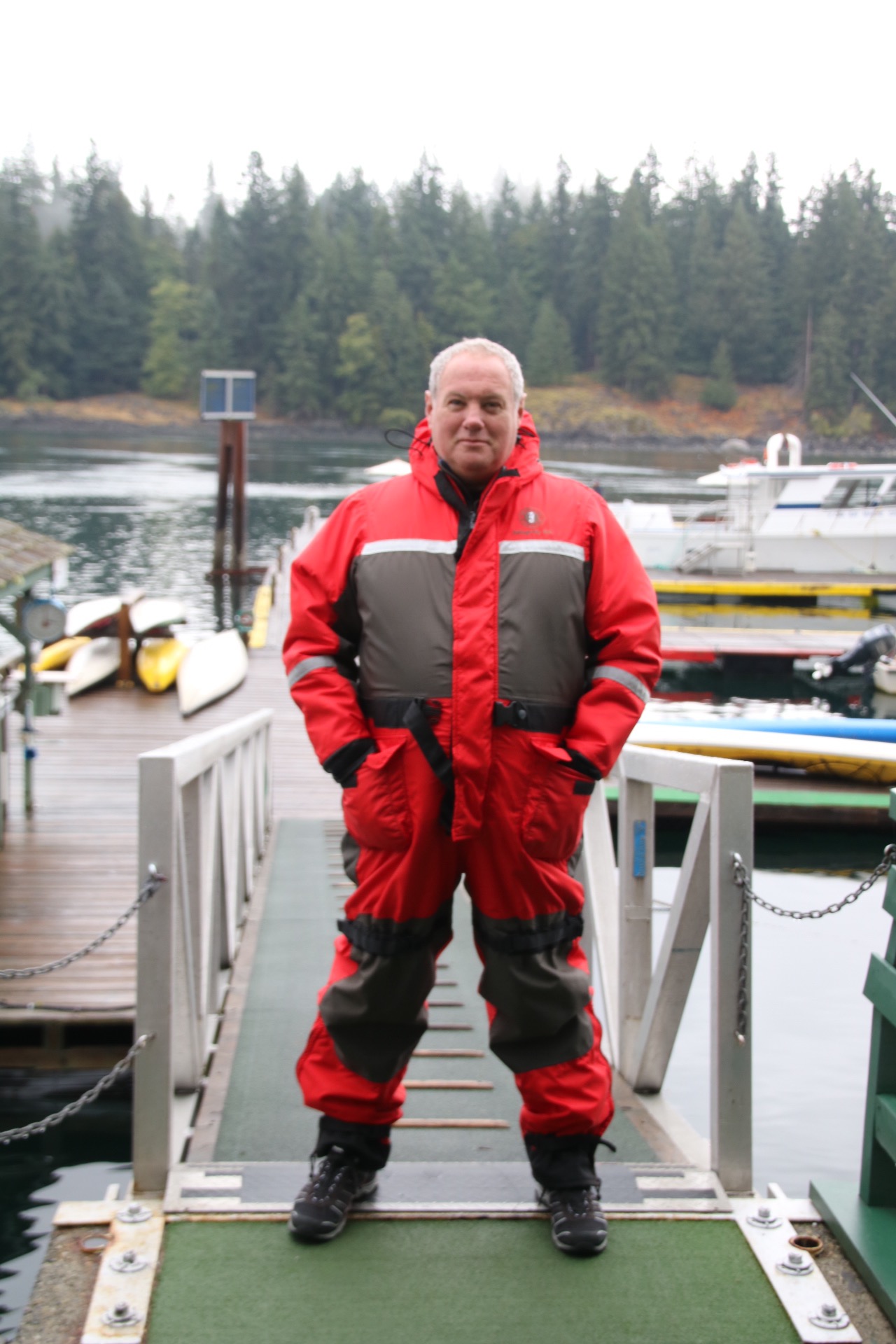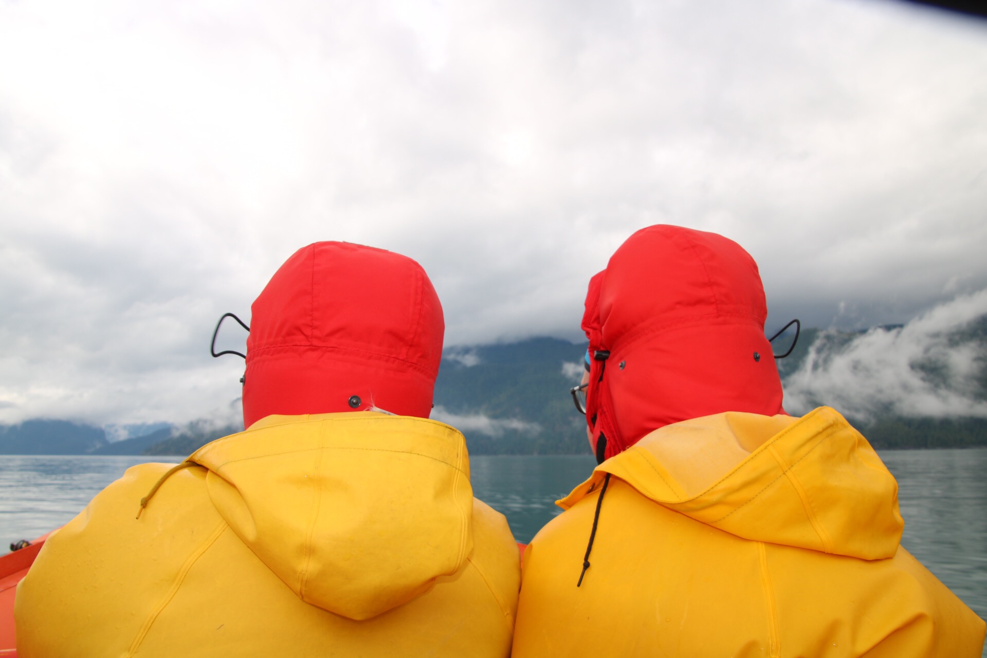 So we have left the city and arrived off the mainland.  Today starts a week of whale and bear trips. So. Up at 6 to be ready for breakfast at 7. At the pier at 7.45 to kit up ready for the off. It’s absolutely chucked it down all night but there’s a bit of a lull as we go and get kitted up.