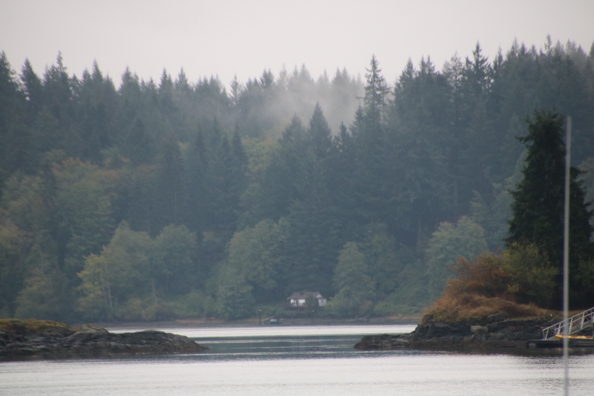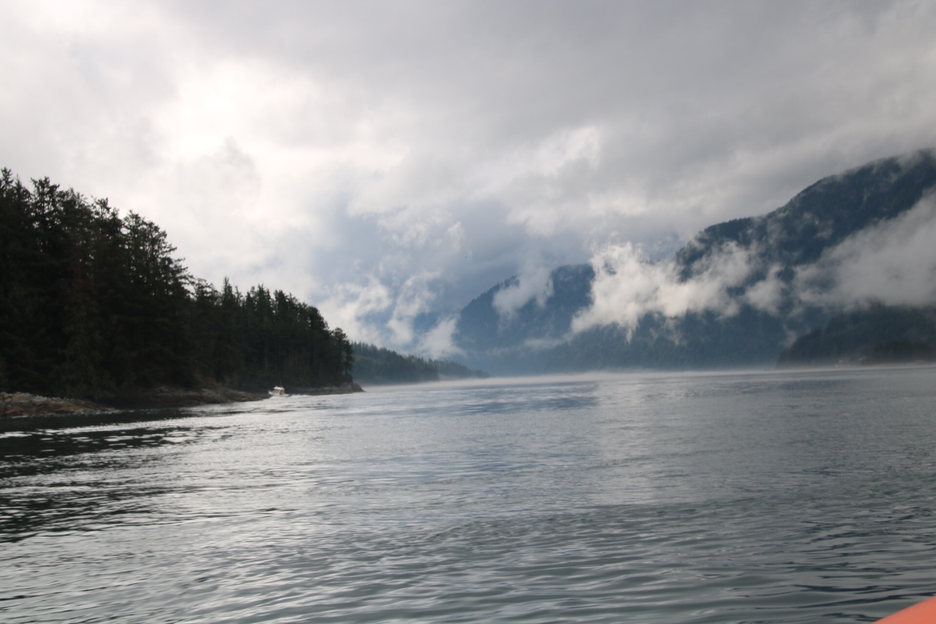 We were wirelessed. There had been a sighting of killer/orcas whales that morning. So off we went. Another hour in the rain. Skirting the shoreline. Still no whales. We stopped near the shore watching a couple of bald eagles circling overhead. That’s when I could lift it. Between goggles. A hat. My camera stuffed in my boiler suit.