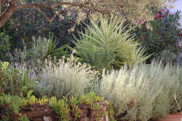 This border and the circle under the old olive tree is doing well. There are loads of olives. The strawberry mint I planted and which I thought had died is growing again. I didn’t think that even I would be able to kill mint.