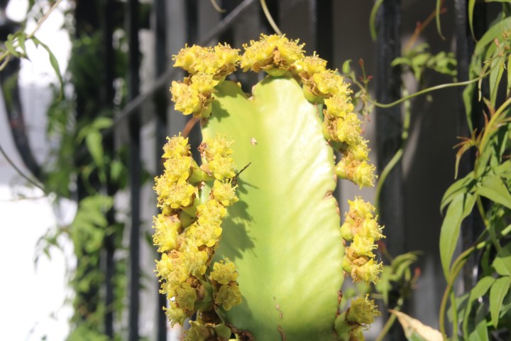 This is an euphorbia which I always think of as a cactus. Which its not. Its Euphorbia Candelabrum. An euphorbia. Not a cactus.