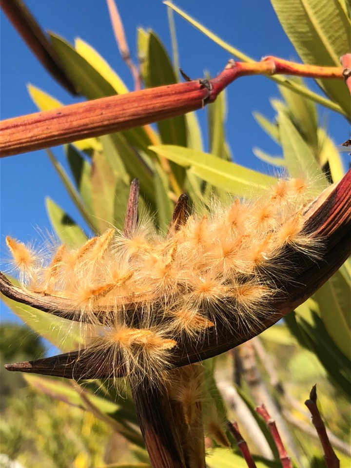 The Oleanders had thrown long seed pods which were turning a dark colour on the plants. I had never noticed them open before. This one is fabulous. Absolutely stunning. Fluffy seeds. Probably looking its best against a gorgeous blue sky. I’ve hastily cut all the pods off as they self seed like crazy. And I have enough. Well unless I can get that lovely peachy colour.