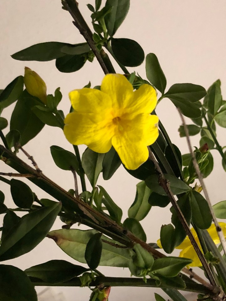 I went with a friend to see an old house that hadn’t been lived in for 20 years. After a look around the house – great potential – I had to look around the garden. As you do. This caught my eye. He said ‘ wild jasmine’ I said i’ll take a few cuttings if you don’t mind. He didn’t. So I did. Its a bigger flower than the yellow winter jasmine we have already. Flower is a bit more of an acid yellow and looks a bit like a double flower. So I have some rooting in the garage. Not as in the garage but in pots in the garage.