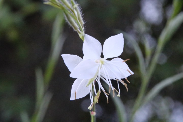 I’ve had to remove one or two of the giant leaves off the Strelitzia Nicolai as you risked being smacked in the face as you came into the garden. I removed probably ten yucca shoots to give a bit more air and light from near to the gate and planted a few more gaura which have become my favourite plant this year. Inspired by a friends garden in Essex who has a gorgeous path planted with gaura I decided to plant some mixed with lavender along this path. The lavender was great for the first two summers but I replaced most of it as it had become too woody. Some has been fine. Some hasn’t. But the gaura has been gorgeous. Like little white butterflies hovering.