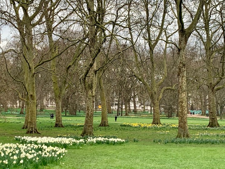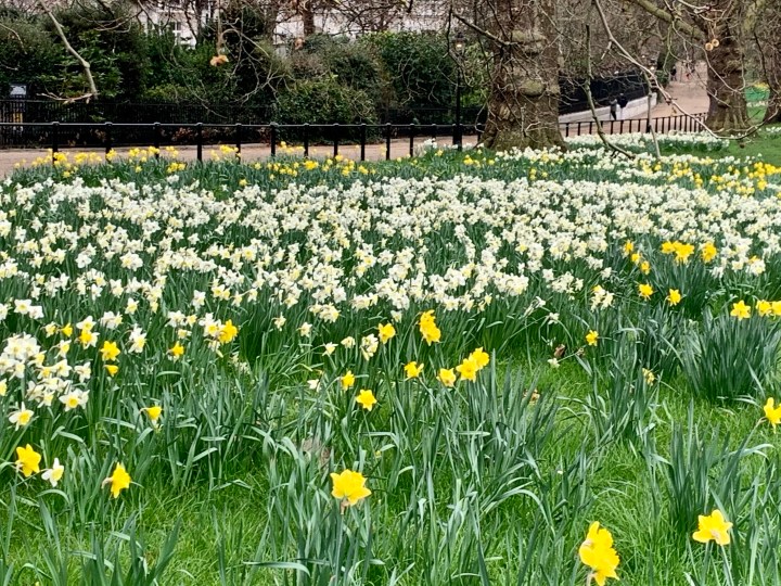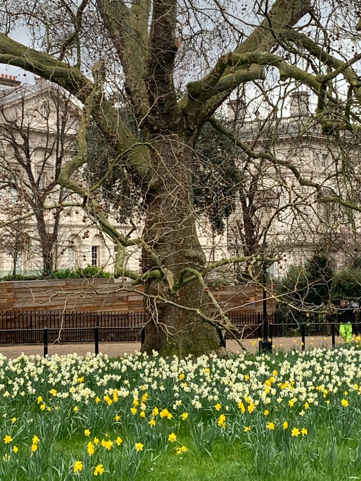 ‘Rumour has it, back in the seventeenth century King Charles II’s wife demanded all the flowers be removed from The Green Park after she caught him picking flowers there for another woman. The park still has no formal flowerbeds but is riot of yellow in spring, when around one million daffodil bulbs are in bloom.