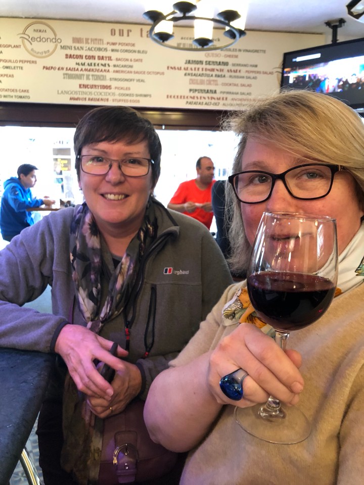Now you cant be in Spain and not stop off at a traditional Tapas Bar. Surprise surprise. We did. Packed too. With Spanish. Always a good sign. So we sat at the bar like locals. But stood out like we were not. Tempting Georgie into trying the different choices. A typical Tapas. One drink. One small tapas free. Oh. And wine and beer. For them. Not me. We had to get back up the wiggly road