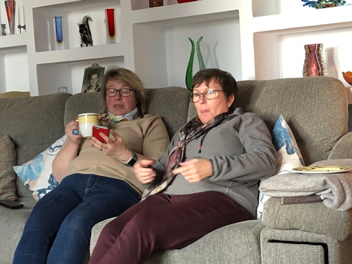Back at the house and time to relax. Not quite sure what Lorraine was explaining. But this was during the day and no drink was involved!