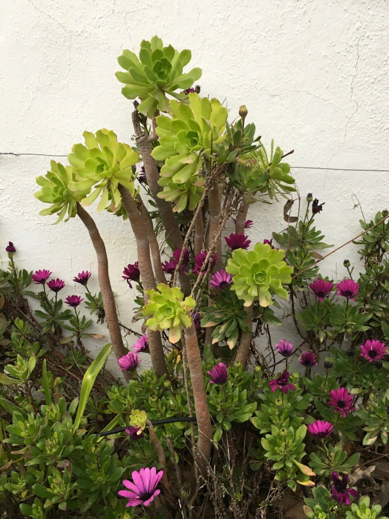 This aeoniun was a broken limb from one I have in a pot. Shoved in the ground hoping for the best and ignored. It has, along with a few others taken off. It always reminds me of aliens. I have no idea why.