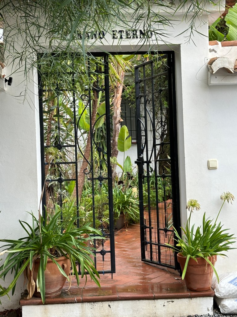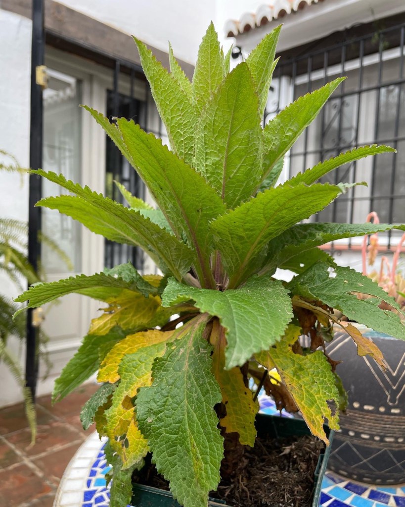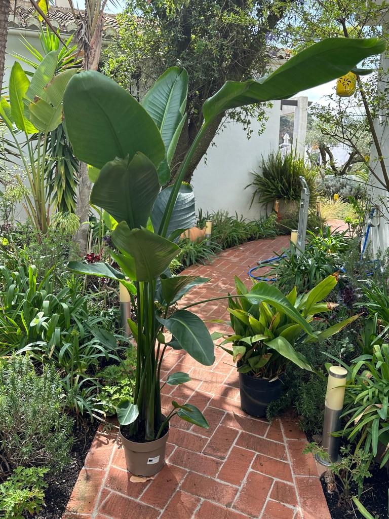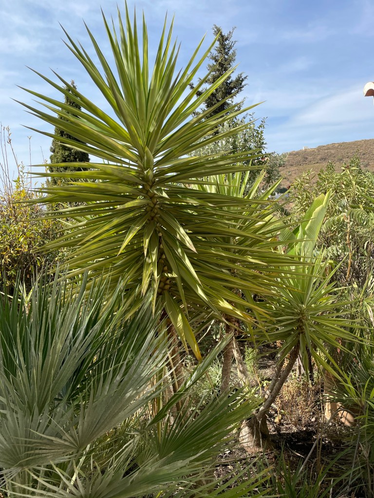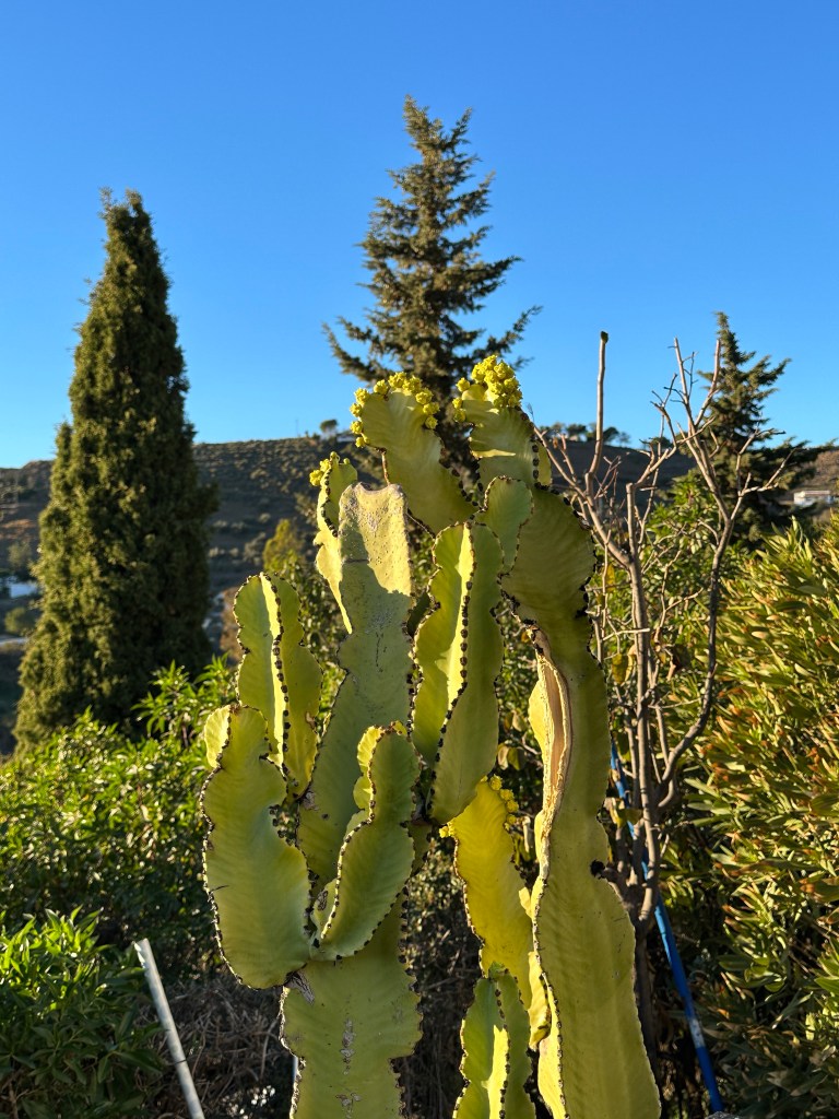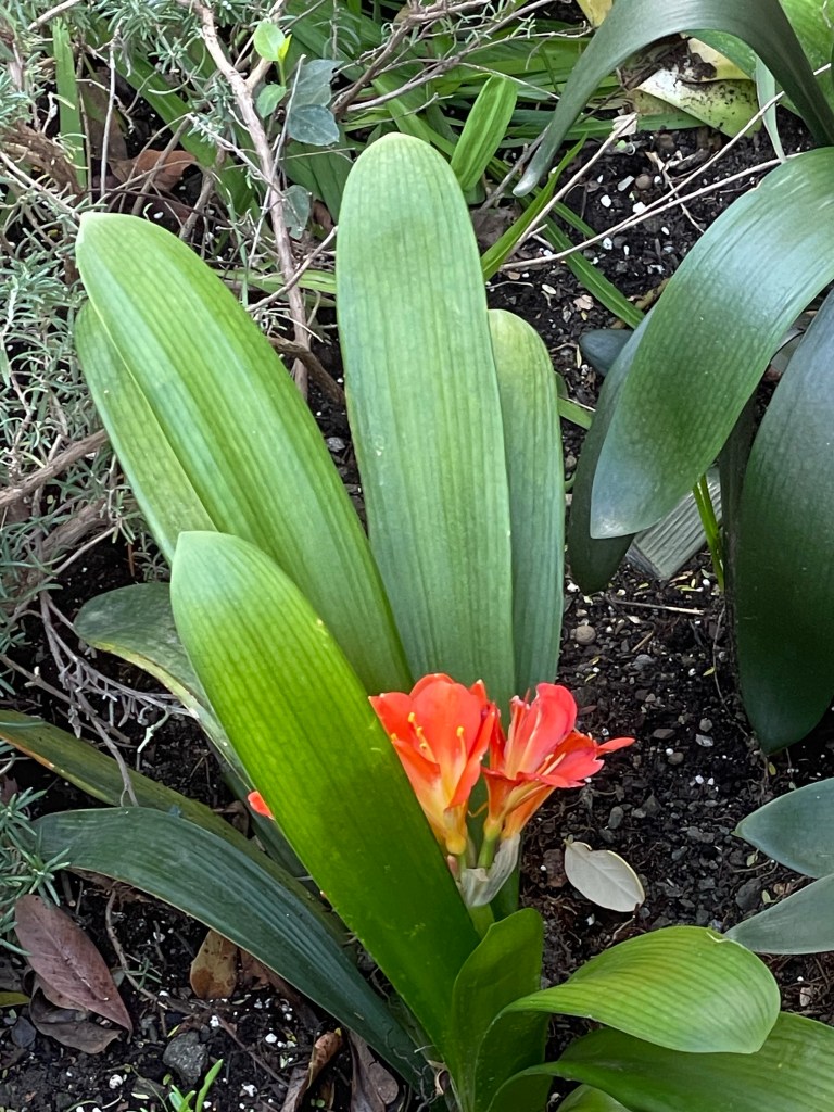 Another plant growing outside is a Swiss cheese plant. In Olden days – my childhood – popular indoor plants included the rubber plant , the Swiss cheese plant and a purple tradescantia. We have the latter two growing in the Mediterranean garden in Cómpeta. I never liked them indoors but they are tolerated in the garden. Unlike the clivia which was an indoor plant in my office which I loved in a pot so I and am happy to have a dozen in the gate bed.