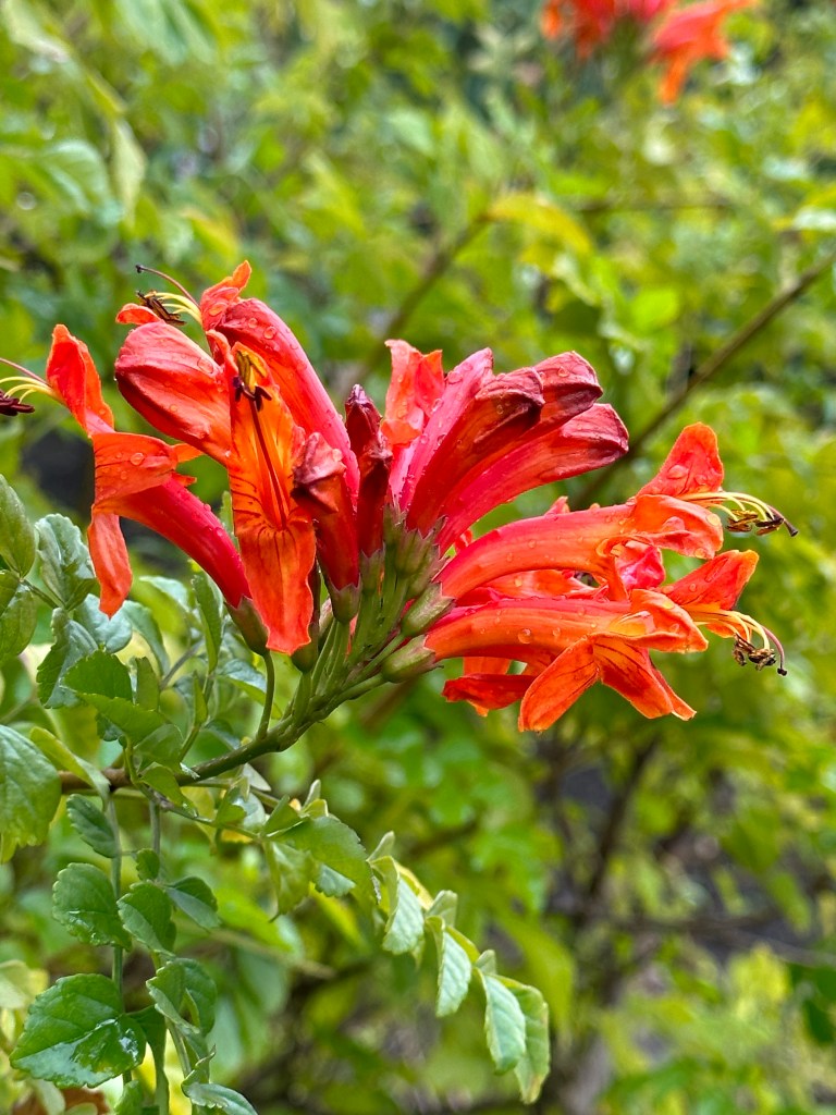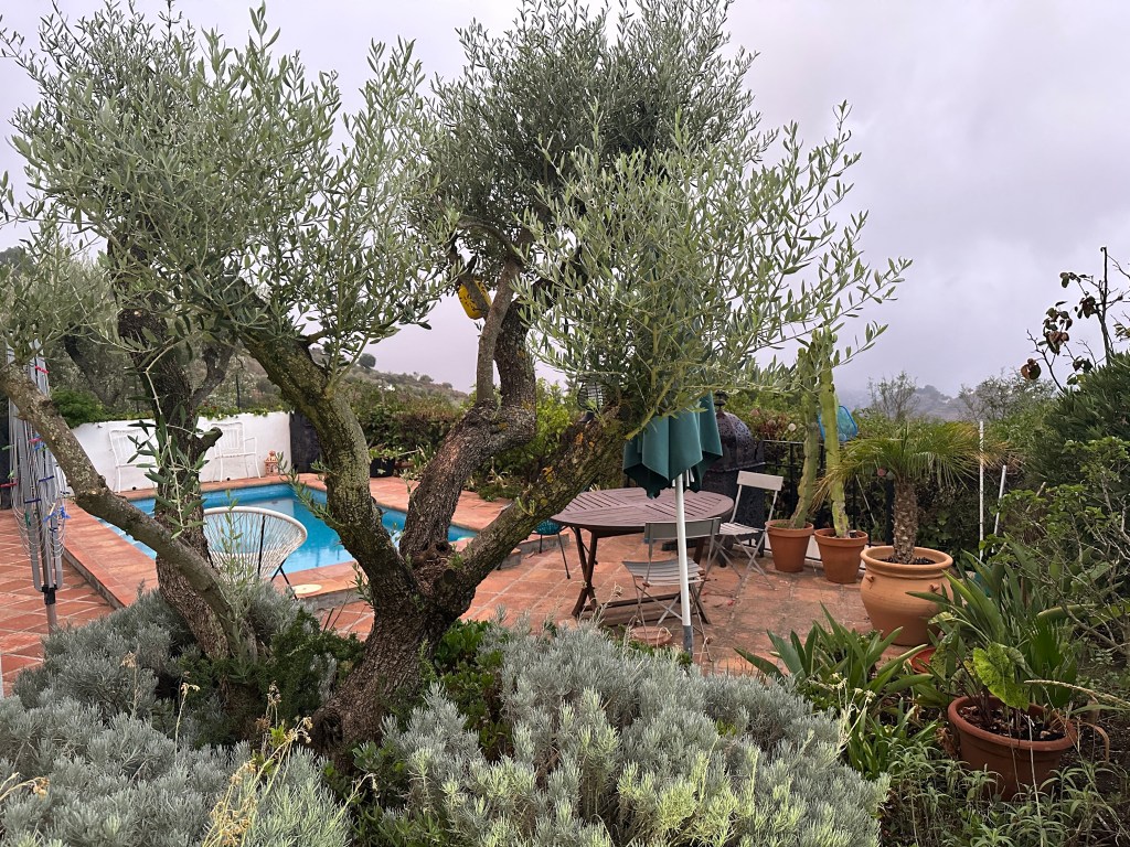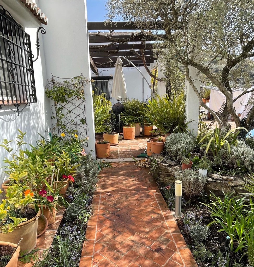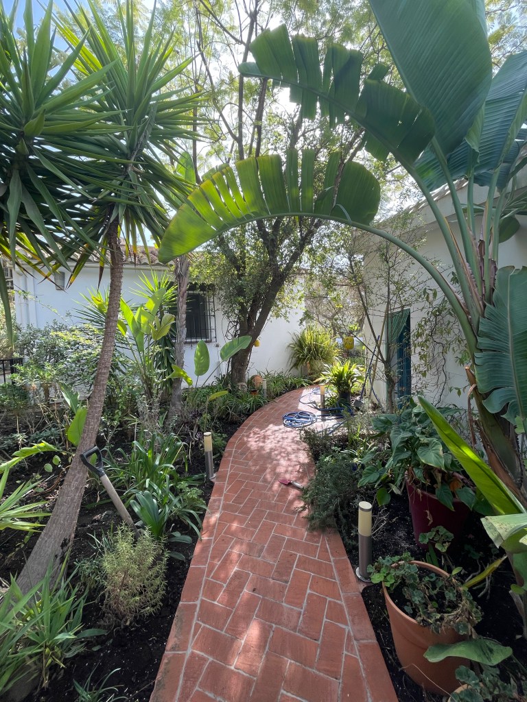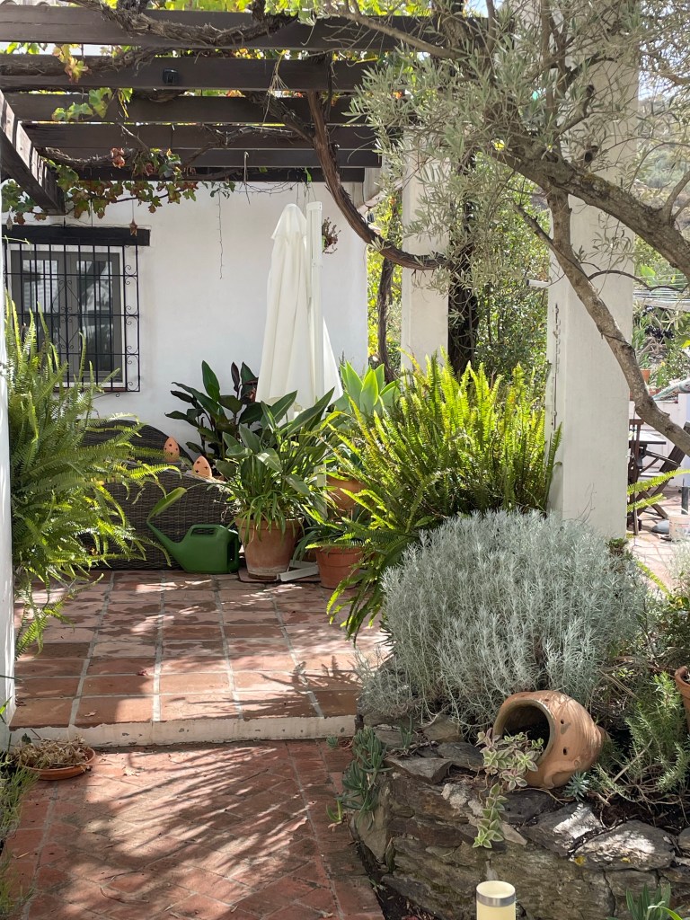 Another plant growing outside is a Swiss cheese plant. In Olden days – my childhood – popular indoor plants included the rubber plant , the Swiss cheese plant and a purple tradescantia. We have the latter two growing in the Mediterranean garden in Cómpeta. I never liked them indoors but they are tolerated in the garden. Unlike the clivia which was an indoor plant in my office which I loved in a pot so I and am happy to have a dozen in the gate bed.