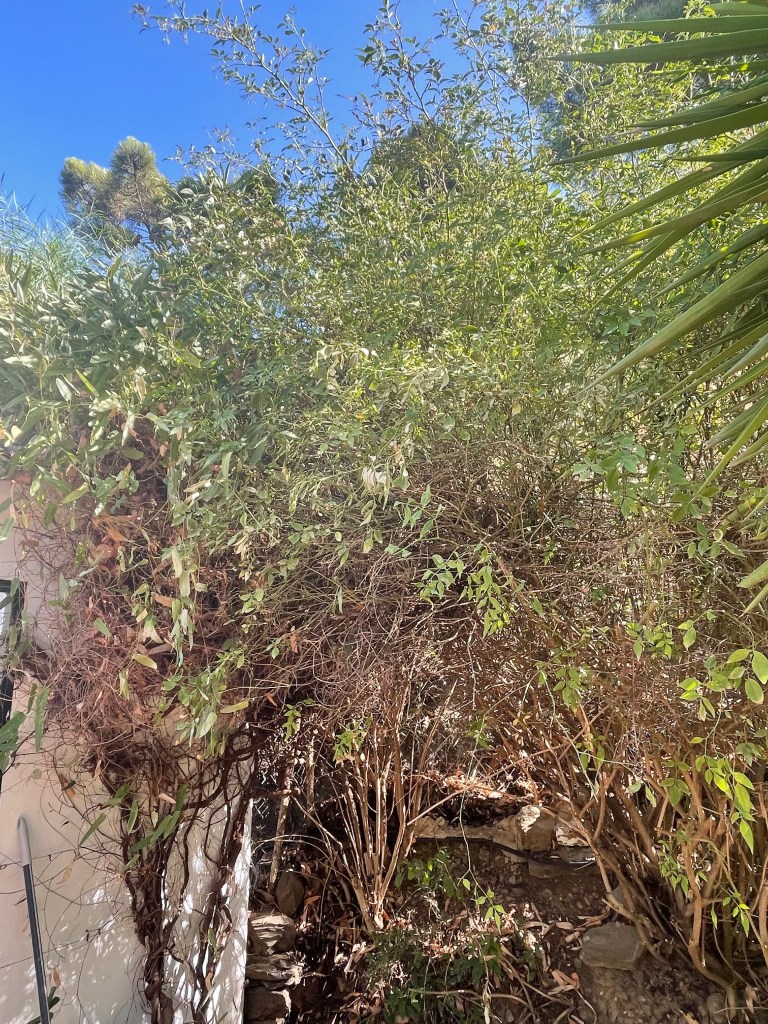 The gardener knew we were arriving and had been in and had cut the hedge. Had shaped the olive tree and had cut the roundabout that’s not a roundabout as well as the rear banks. None of which I am safe to do these days. I’d end up rolling down the hill to the main road and beyond. Not a pretty sight. Me. Not the banks as they look great.