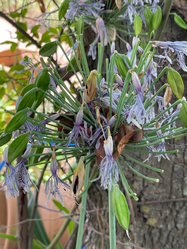 The agapanthus are over and the seed heads heavy. Some have seed heads. Some don’t. I’m sure someone will tell me why.