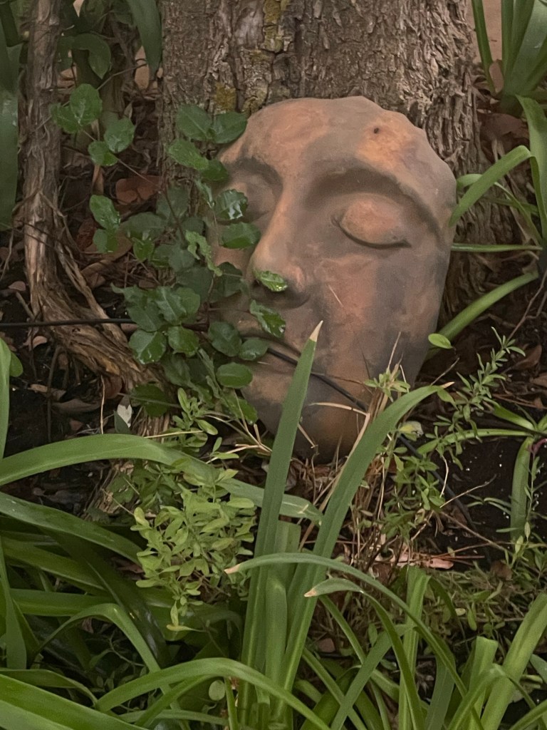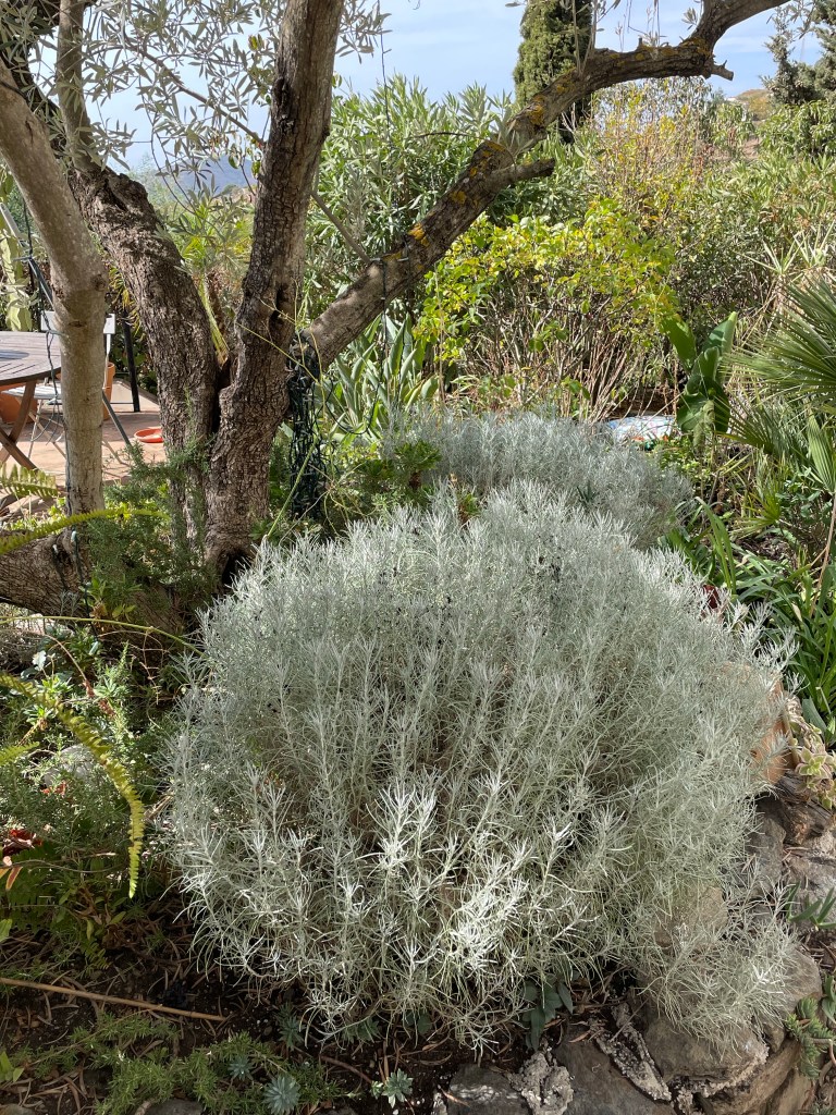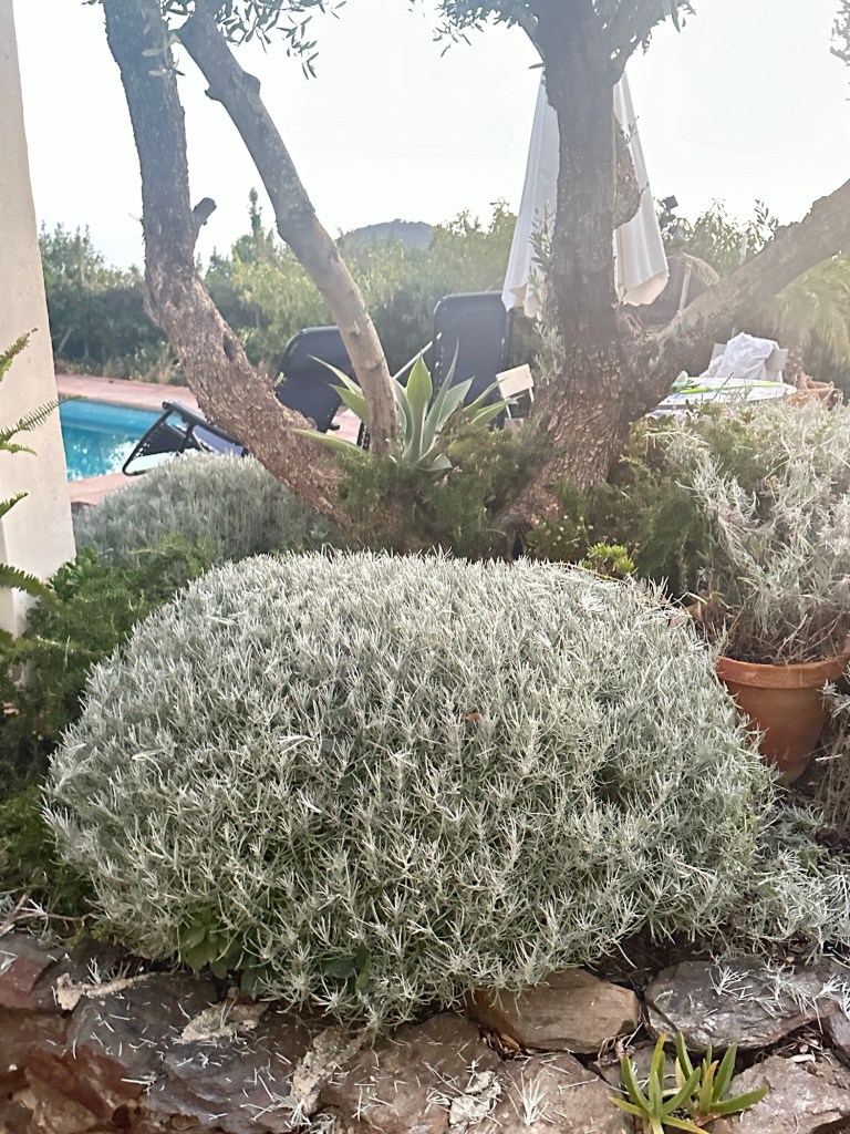 You can now get a strong whiff of curry as you walk up the path past the olive tree. I planted three curry plants under the olive in the raised circular bed and have quickly tidied them up ~ but my attempt at topiary is rough. Just don’t ask me to trim your hair.