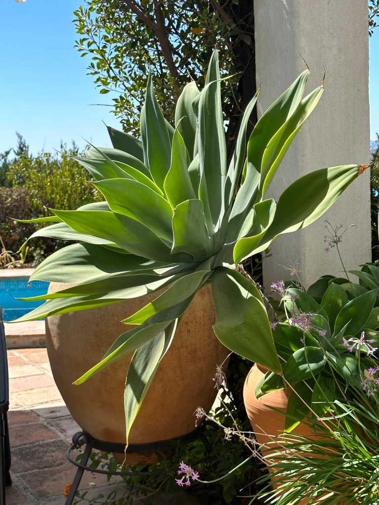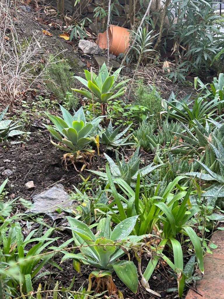 I love the foxtail agave which I’ve mentioned once or twice before. It’s a plant that keeps on giving. Young plants have grown alongside which have been replanted elsewhere in the garden. Once the agave flowers the plant dies. This one is over ten years old and I’m hoping it doesn’t flower.
