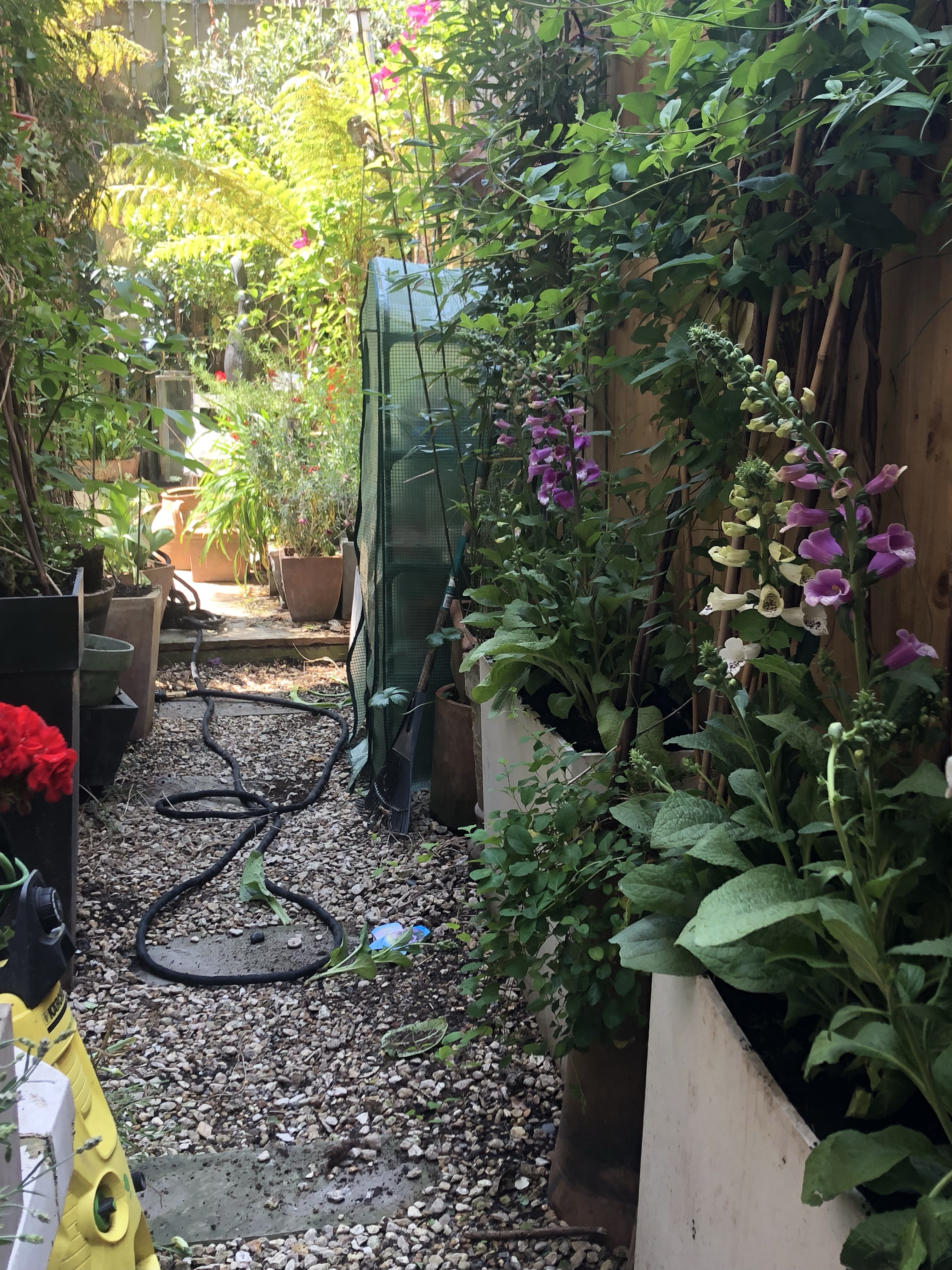 The back garden is small. Very small but full of pots. The tree ferns are in pots. The foxgloves and the the clematis. All in pots. The garden is fed with alpaca poo courtesy of Lou Archer. Well not Lou but her alpacas obviously. She has s new product which she launched at RHS Chelsea especially for tree ferns. A must have for me when I get back and it’s on her