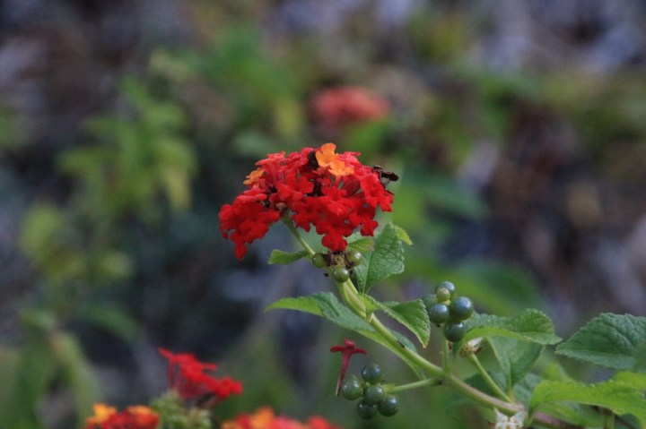This is one – a pretty orange. Looks a bit like lipsticks. But they will open in the sun. But try and get a decent picture when they open. I tried. And failed.