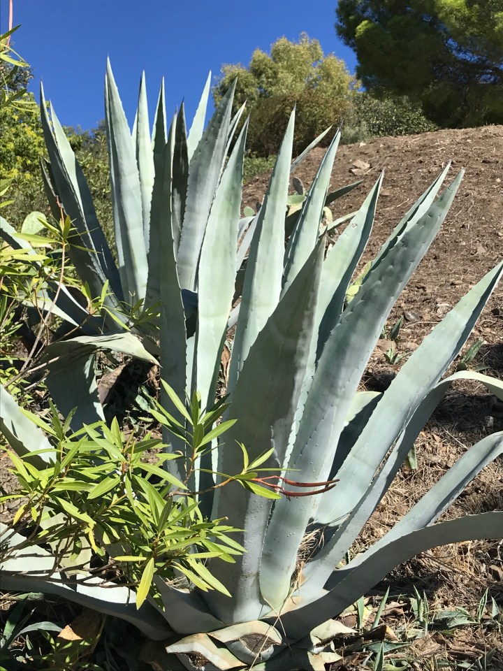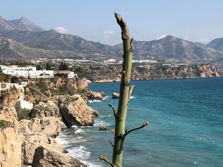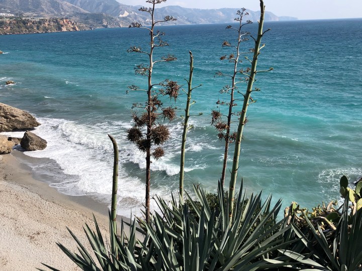 We have also been to the coast. Up and down the wiggly road. In Nerja there are fantastic agaves along the beach. With tall elegant flower spikes. Which a friend said that looked like giant asparagus. Another says they look rude. Whatever they look like they look magnificent.