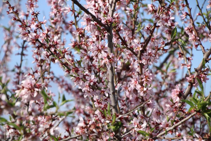There are almond trees along the road and are in various stages of bloom. Surprisingly some have almonds forming already. The three I have in our garden are still flowering. Nowhere near having any almonds form. I’m hoping this years crop is better than last.