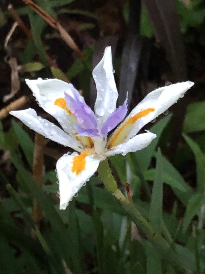 So I watered. Not a lot. The ground is still wet if you poke around a bit. It surprises me what I see for the first time when casually throwing a bit of water about. Like this Dietes grandiflora – fairy iris. I planted two at the end of the summer and there have been flowers on and off since. This is a new one I planted after Christmas and it’s flowering. Well. I say flowering = there is one flower and another in bud. But it’s a pretty little thing.