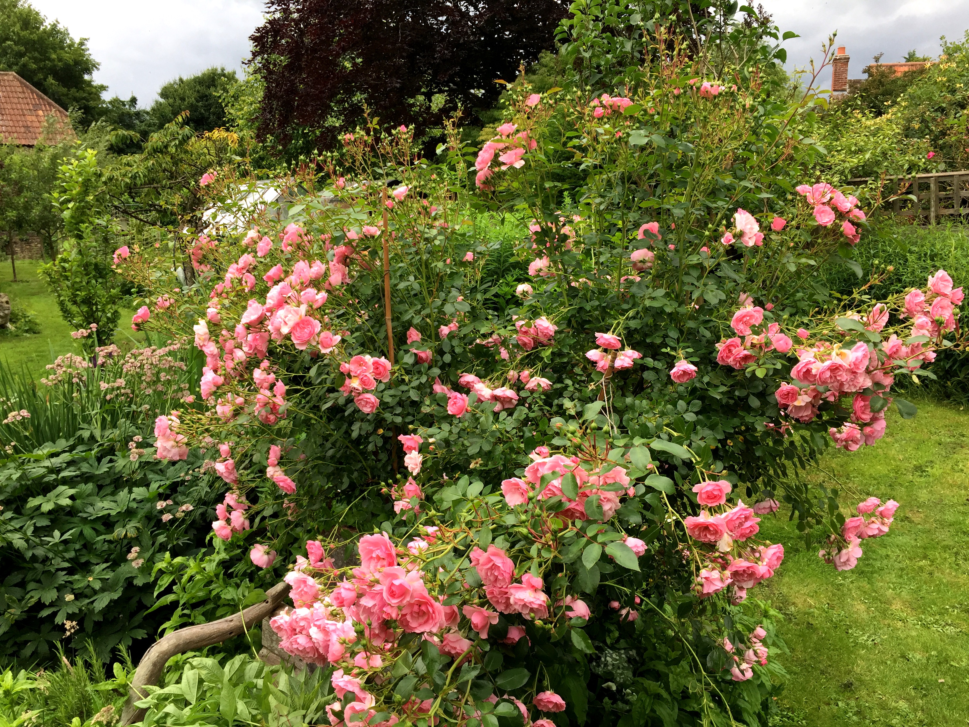 The rector is having a good old ramble in an old largely dead apple tree. Another rose hugely cut back hard – and almost all ~ dead wood cut out. It’s certainly a prolific flowerer. Shame it’s not a repeat flowering rose. I’m greedy I know. I want colour. Scent. And repeat flowering. Throw in thornless and I’ll be happy. Hard to please~ me ?