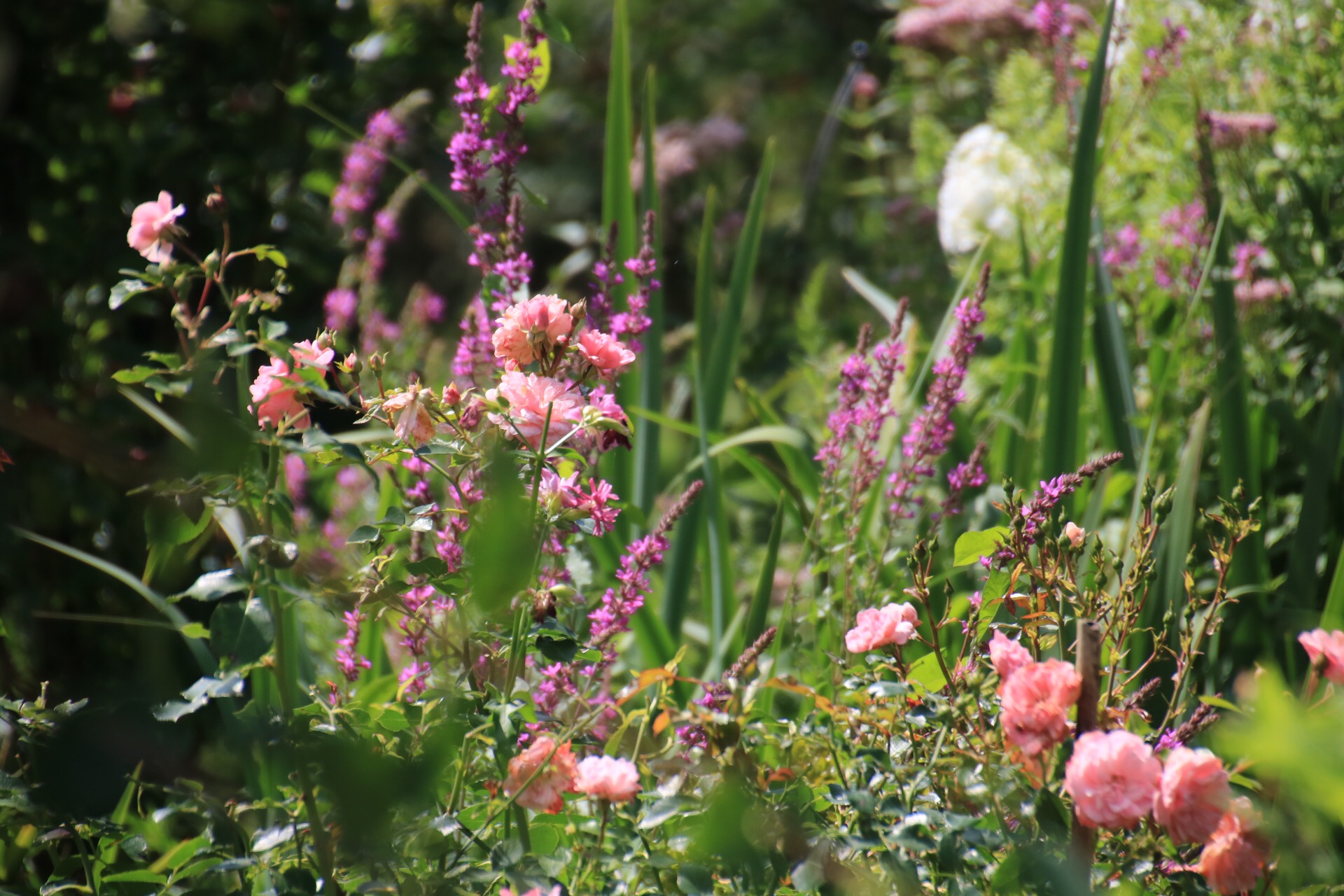There is still plenty of flowers to come ~ the funky sanguisorbia lilac squirell which I love. The canna, although for now the leaves are interesting enough, gladioli, pink and white phlox, red persicaria with others.