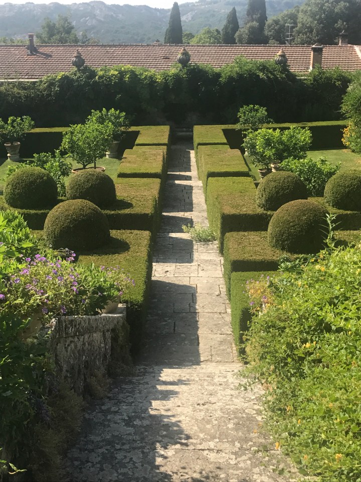 It’s interesting to see how the gardens at hotels with restaurants work. Here there is a glorious kitchen garden – an amazing array of veg which is used in the kitchens. Together with flower beds and lavender paths. I’m glad to say that my lavender paths in Spain could compete. They have trimmed theirs back which I will do when I am back in Spain in two weeks time.