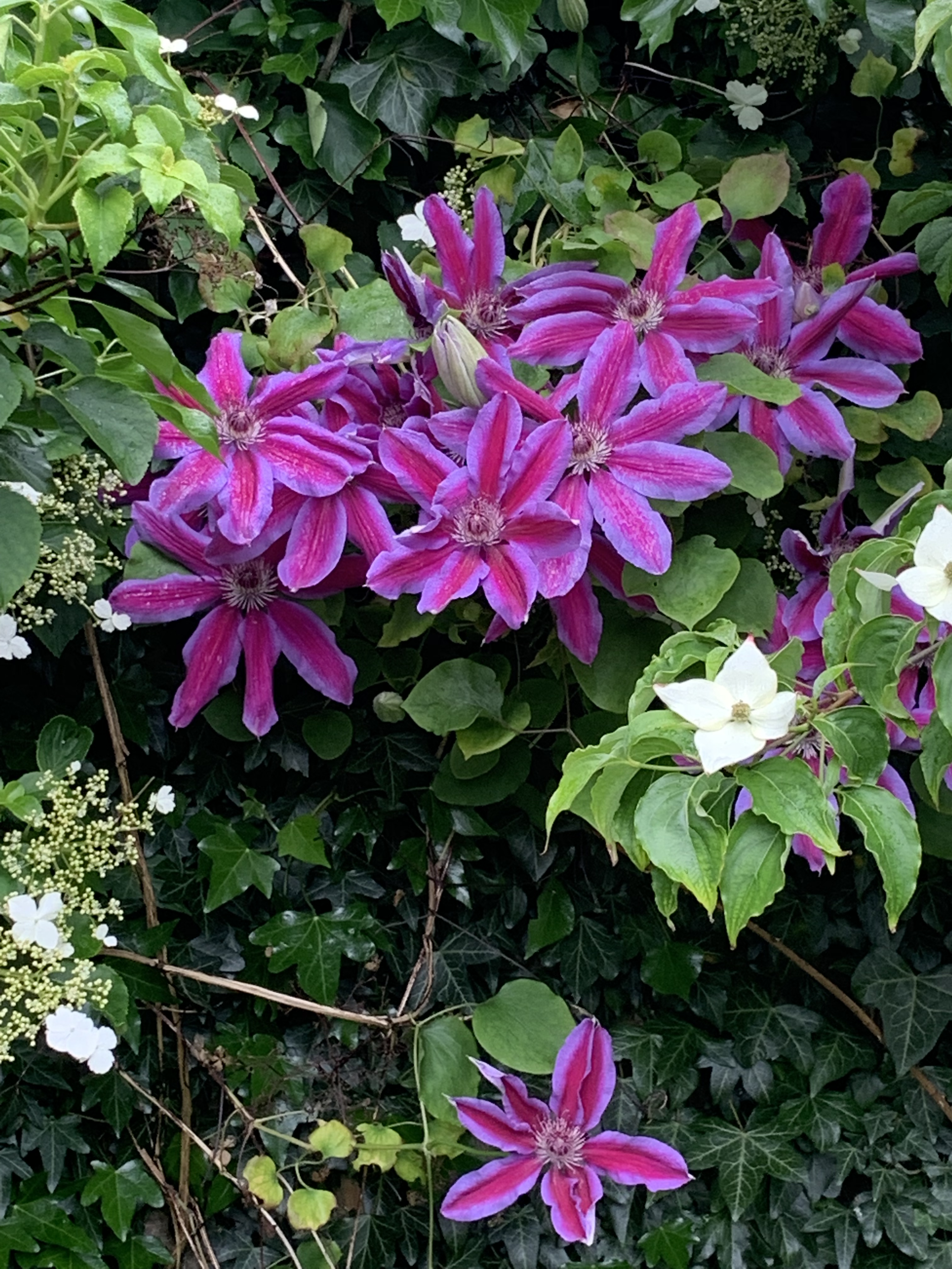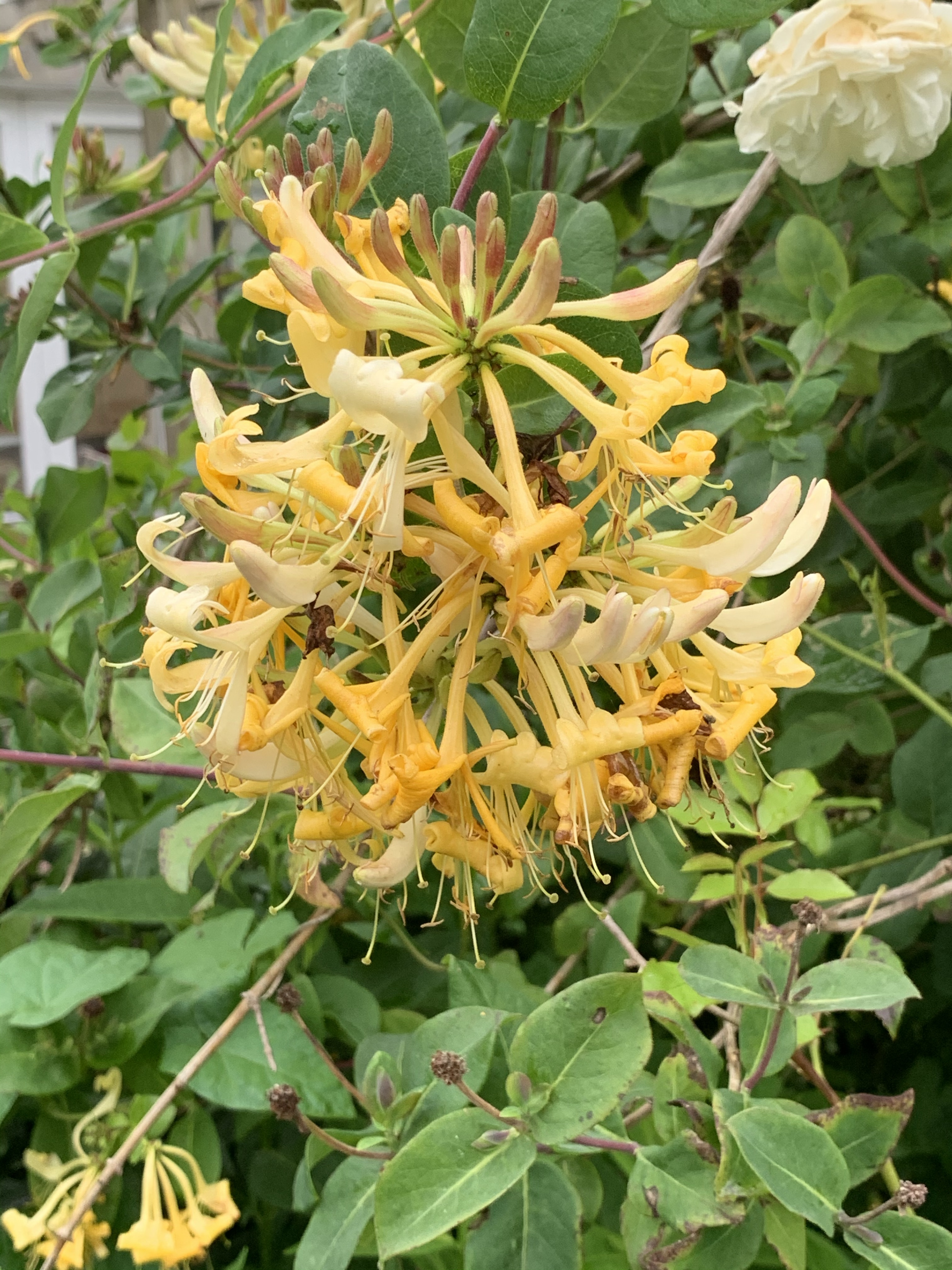The rector is having a good old ramble in an old largely dead apple tree. Another rose hugely cut back hard – and almost all ~ dead wood cut out. It’s certainly a prolific flowerer. Shame it’s not a repeat flowering rose. I’m greedy I know. I want colour. Scent. And repeat flowering. Throw in thornless and I’ll be happy. Hard to please~ me ?