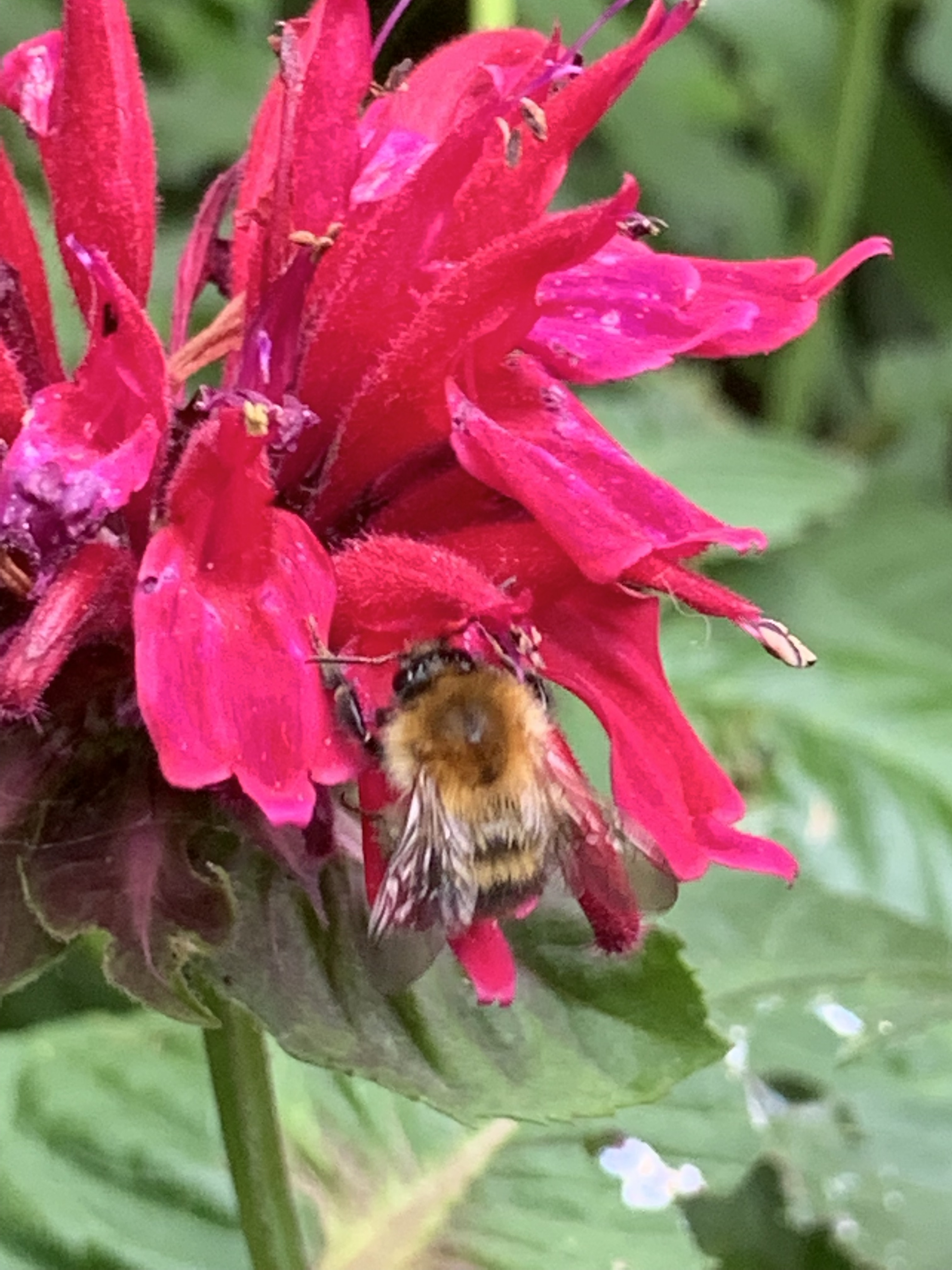 A brand new one this year ~ very tall and different shaped flowers. Big dangly red pink purply flowers on long stems. I’m intrigued.