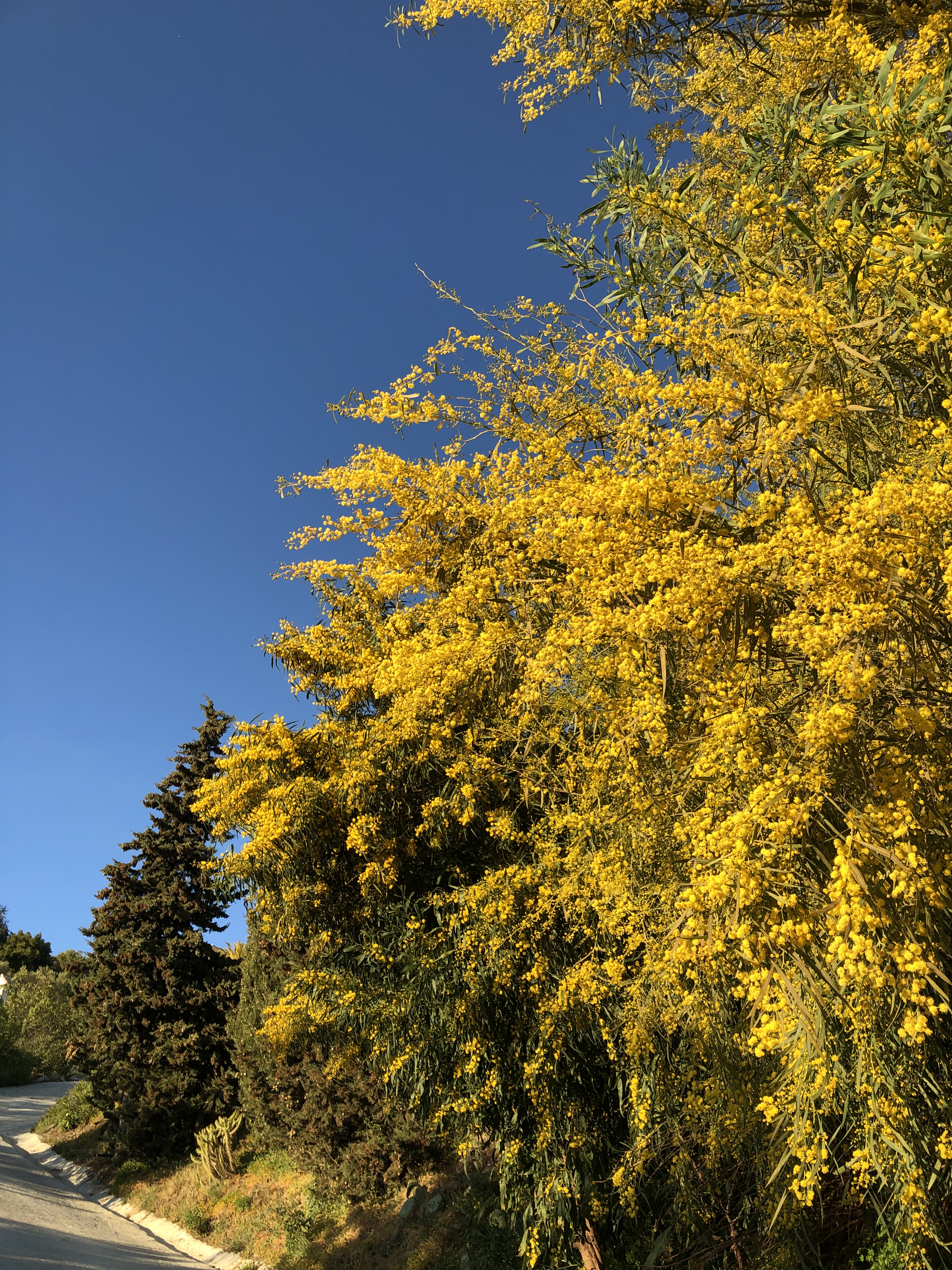 When we bought the house there was a stump of an old mimosa on the bank. I eventually cut it right back but a shoot was growing about two feet away which I was too lazy to deal with. It has now become a large tree bearing amazing hanging branches of mimosa. I will give it a prune after flowering but it’s full of bees at the moment and frames the gate perfectly. Not great for my hay fever but I’ll live with it. Plus it looks great picked for the house.