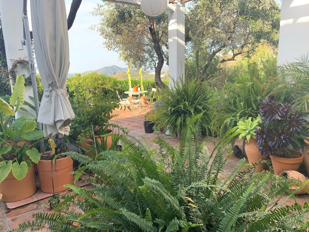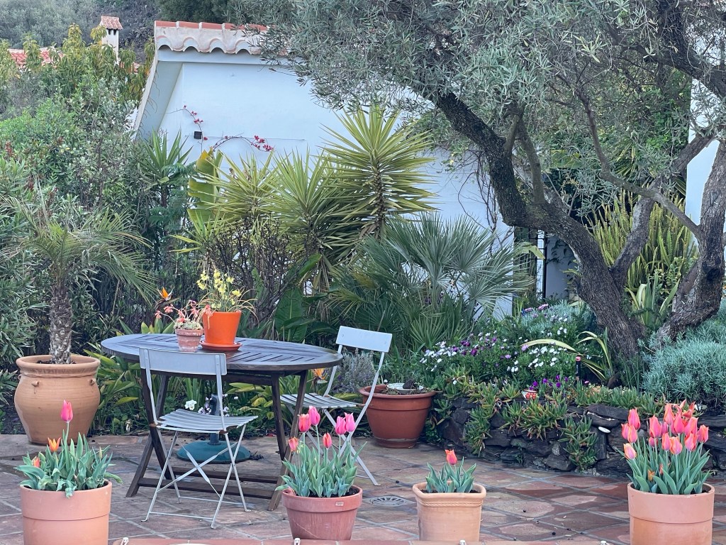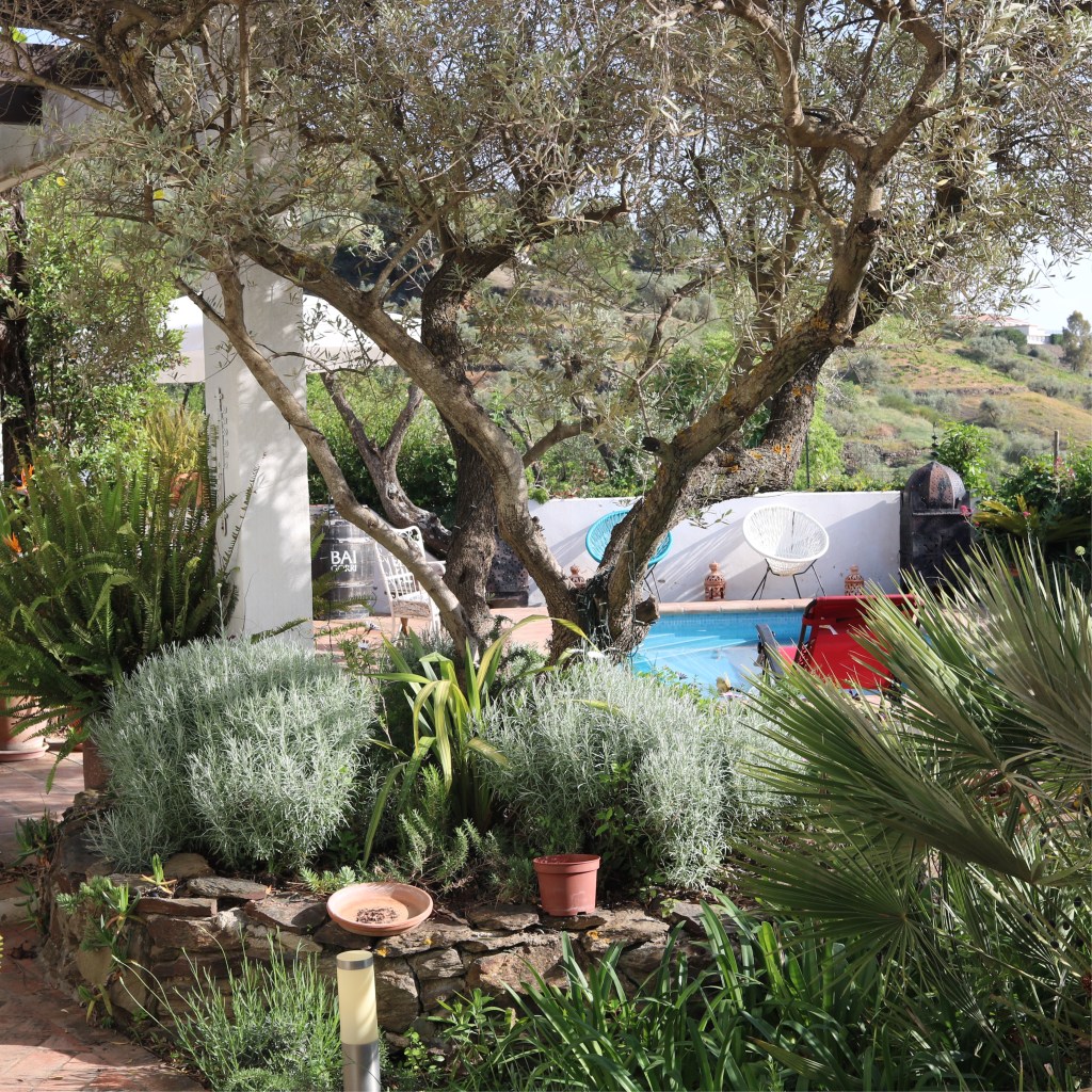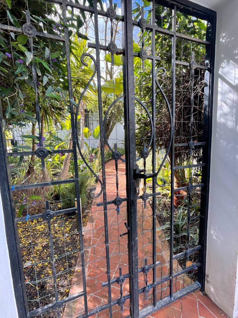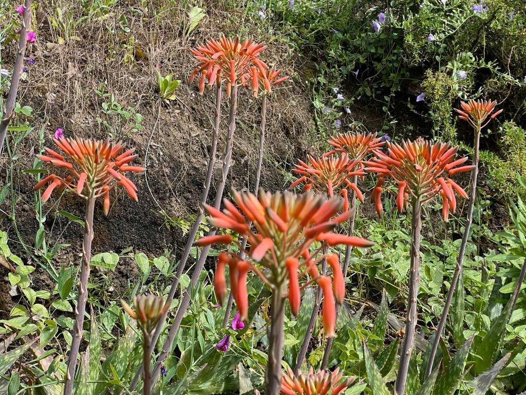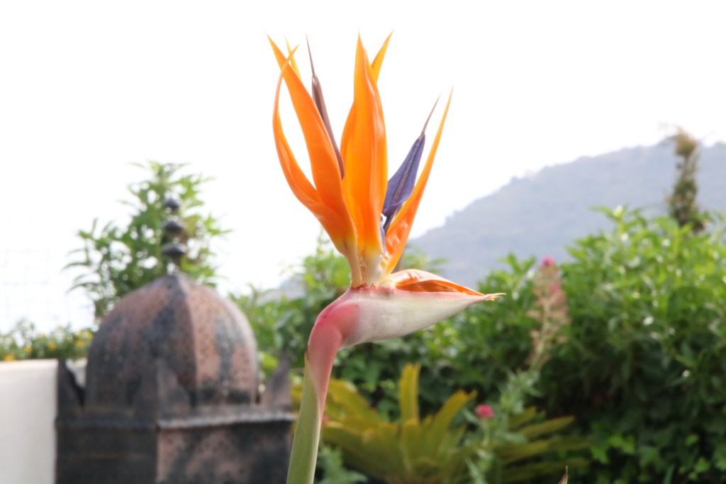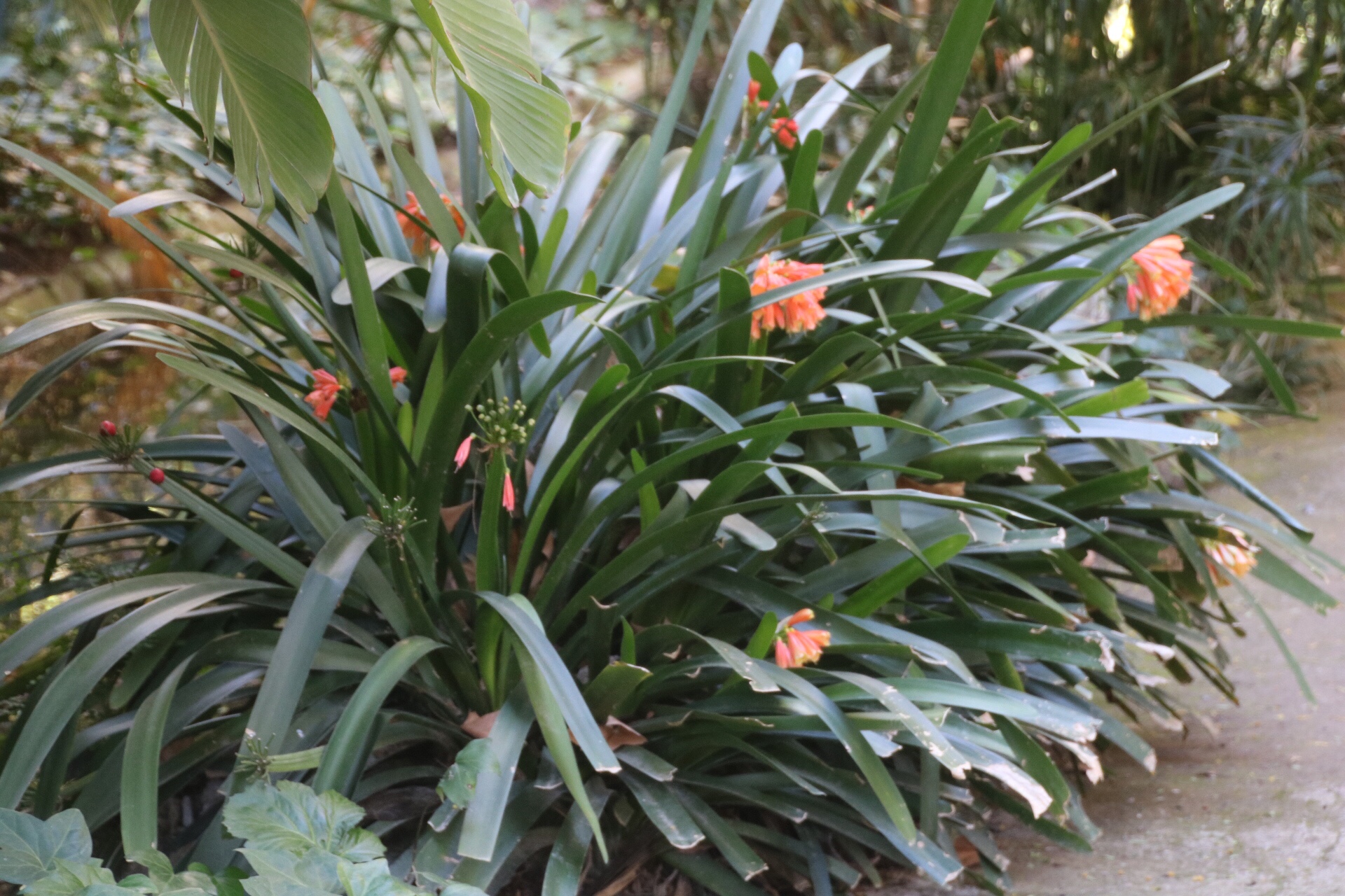 Another plant growing outside is a Swiss cheese plant. In Olden days – my childhood – popular indoor plants included the rubber plant , the Swiss cheese plant and a purple tradescantia. We have the latter two growing in the Mediterranean garden in Cómpeta. I never liked them indoors but they are tolerated in the garden. Unlike the clivia which was an indoor plant in my office which I loved in a pot so I and am happy to have a dozen in the gate bed.