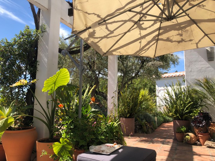 I found a large aspidistra down on the coast. Not literally but at the garden centre. They use these a lot in the inner courtyards so I thought I have a bit of a shady spot on the terrace. So I did. We stayed in a lovely hotel in Seville and they had them in their open area in the centre of the building. That got me hooked. I need to sort the pot.