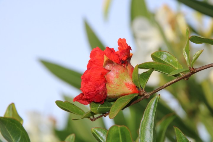 There was more excitement. I walked the side bank to check the chimney and gutters. And there it was. A pomegranate. Now it may seem insignificant to you but trust me. It wasn’t to me. We have two trees/bushes close to each other. We have been here 2.5 years and we have never had fruit. One tree had a flower this year. But this one had none. Now there was a fruit.