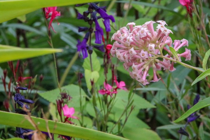 The Indian jasmine is still flowering. One of the oleander still has flowers. The Salvia amistad is marching along.