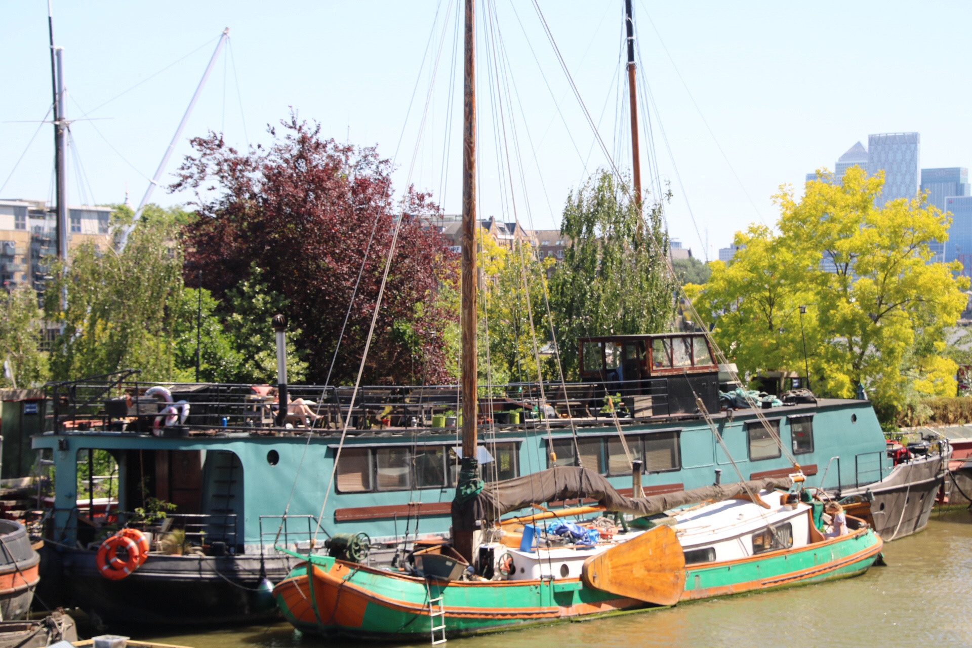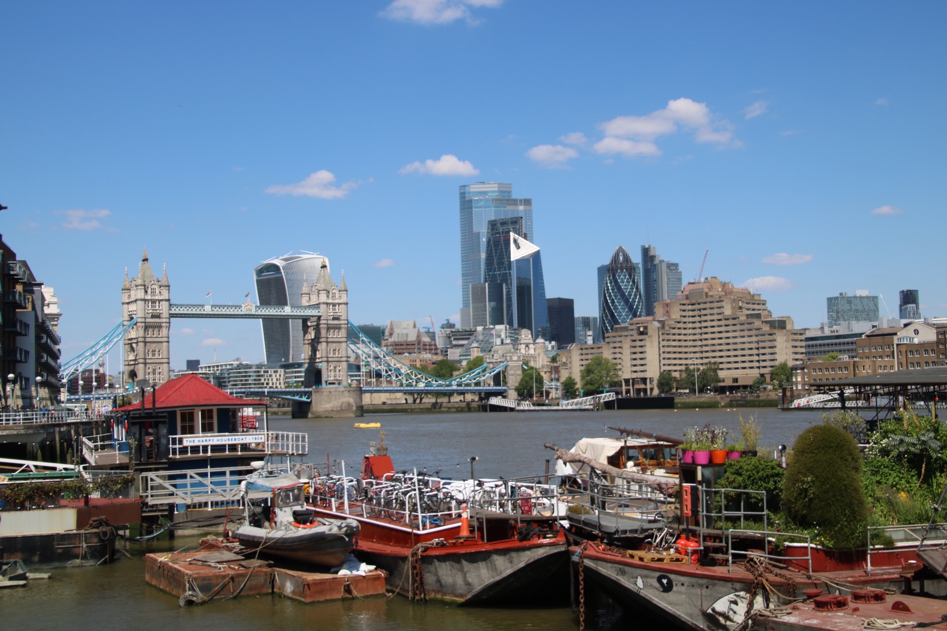 Just beyond Tower bridge are a number of houseboats moored at the surprisingly named ‘Tower Bridge moorings ‘ t