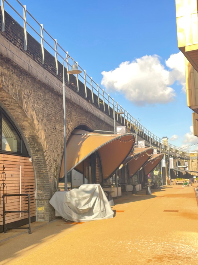 A walk past Southwark Cathedral (nice cafe and a nice garden) down through what I think are newly opened walkways. Through Dirty Lane. It wasn’t. It was very clean. Very bright. Lots of small shops waiting to be opened.