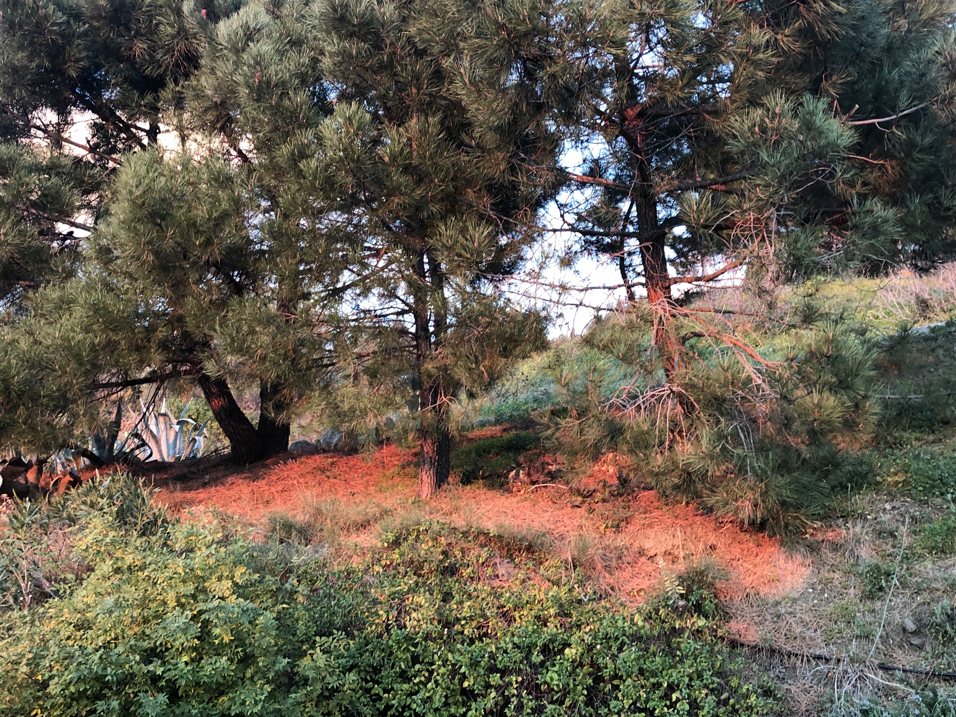 The roundabout that’s not a roundabout is a large area across the access road from us and above the pine trees. The large pine you can see isn’t ours. It doesn’t look much but I can’t strim it myself it’s steep and my balance on it would mean I’d be tumbling down the hill to the bottom of the road. Walk up that access road which is a dead end and you get great views to La Maroma. I know. I’ve done it once or twice in 5 years.