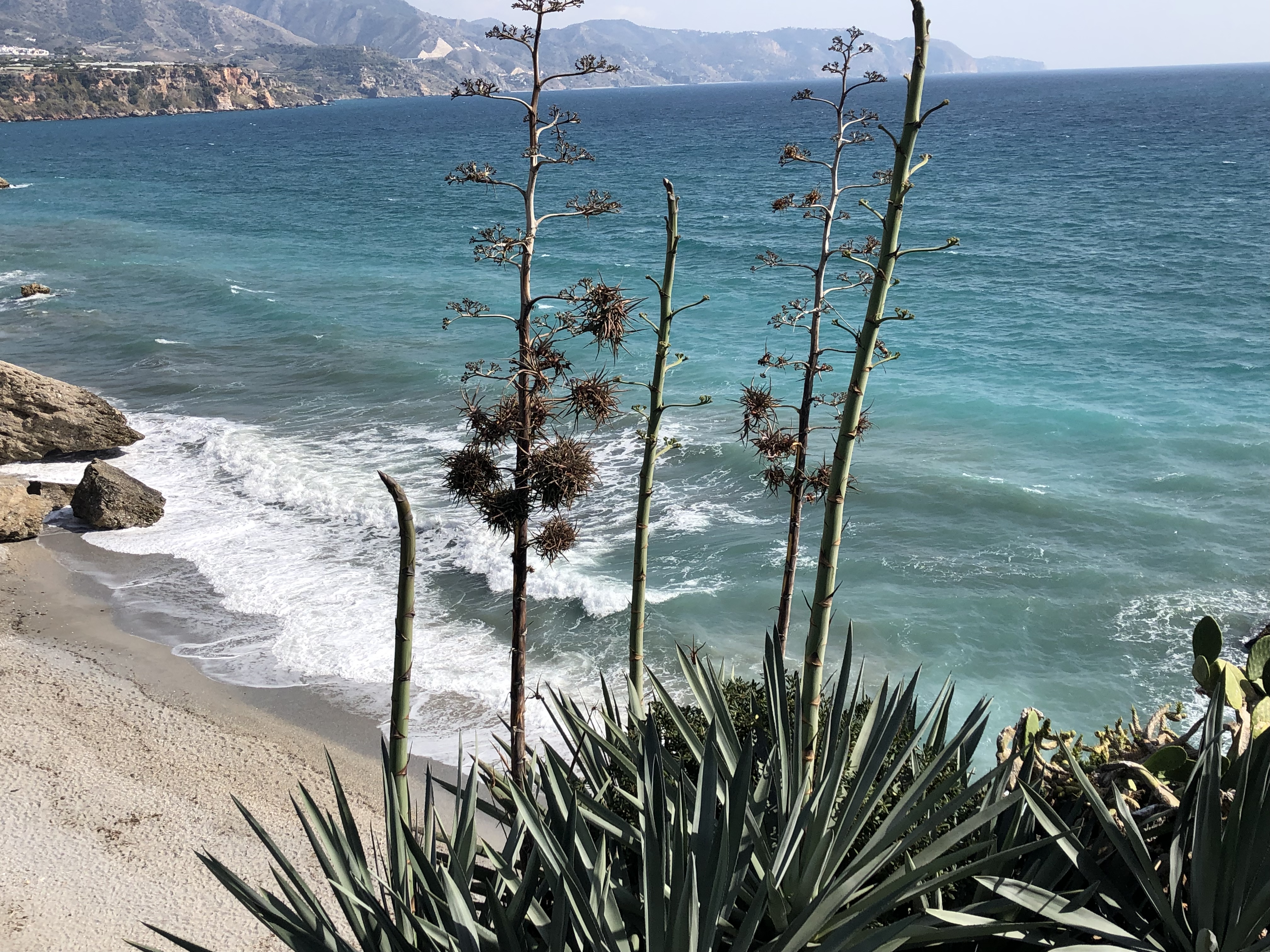I walk through a little shrubbery on my way to Peckham Rye station and they have some amazing Melianthus major growing. I didn’t expect to get them here in Spain but I have. Great plants from Lorraine Cavanagh where I buy most of my plants. When we made an offer on the house I bought a book on Mediterranean plants ready for the new adventure. When Ian saw the price (Amazon). He said how much? He changed his mind when talking to the sellers and I mentioned I’d already bought a book to help with the plants. Oh. That’s Lorraine. The garden centre is here in Competa. Lorraine has been invaluable these last five years and will message me to say ‘ we have had a delivery. I think you may like x. “ It’s one place Ian never minds going. Lorraine also has a book on citrus. .