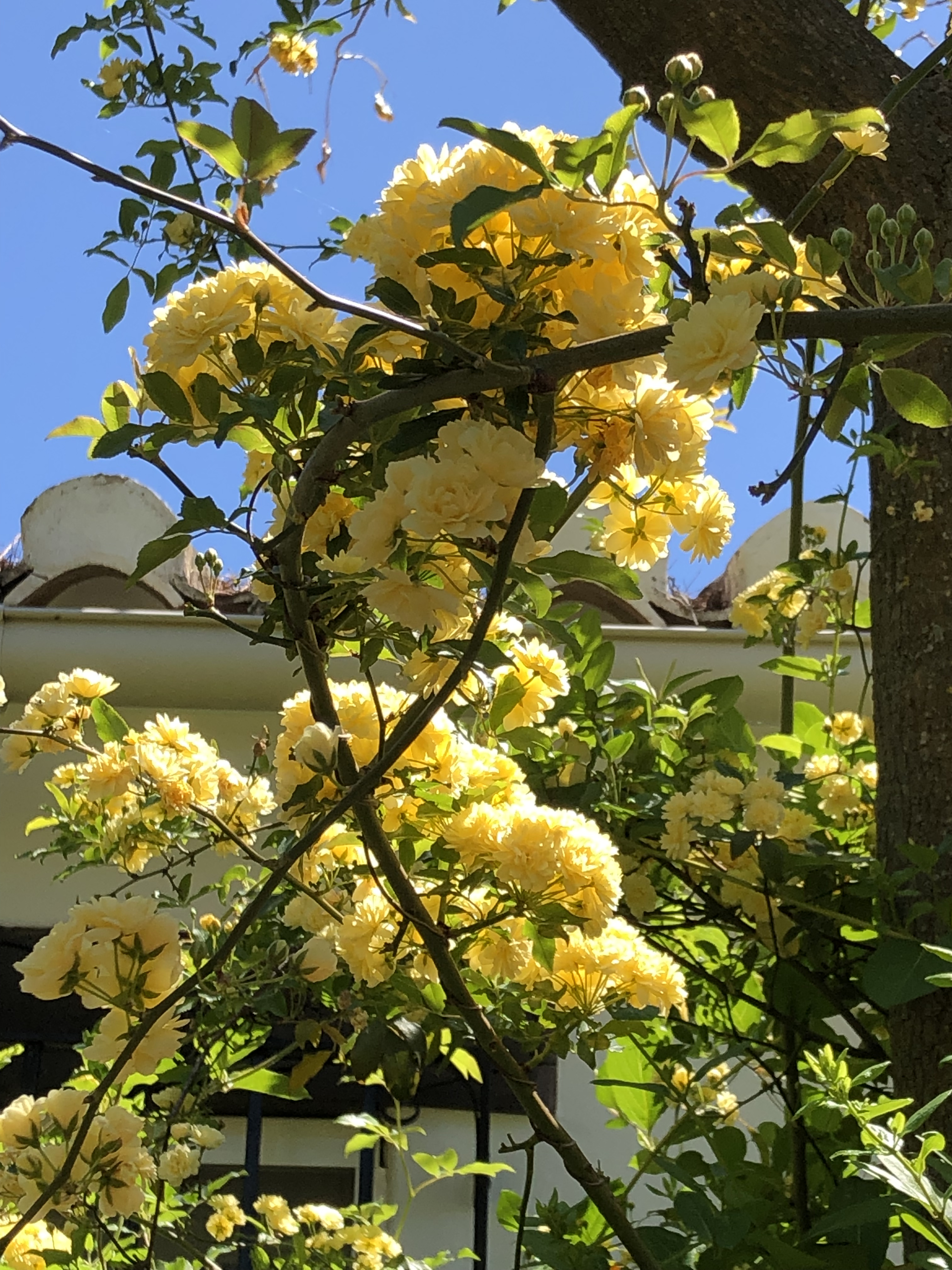 The gorgeous banksia rose is a little sparse on the flower side this year. Climbing the jacaranda tree it’s such a pretty little flower. Makes note to give it a tidy up for next year.