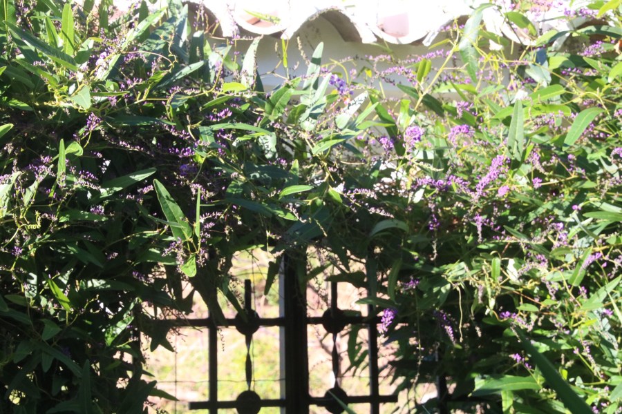 I love this time of year when the Australian-wisteria (hardenbergia violacea) is in full flow over the garden gate. It’s a magnet for bees, is a fabulous colour and a pretty rampant grower. Downside ~ Only one for me is that there isn’t a scent. But you can’t have everything, but you can wish.