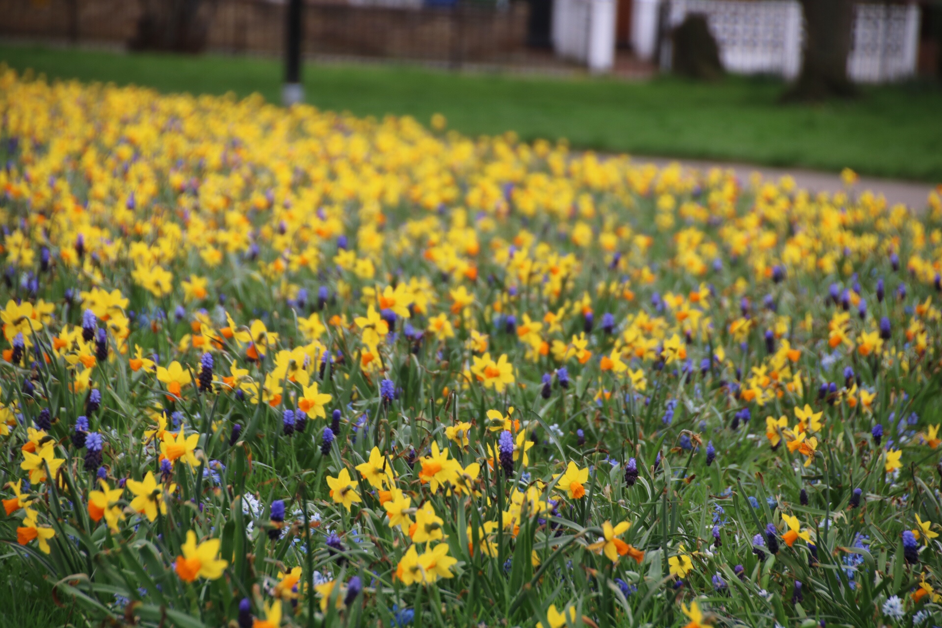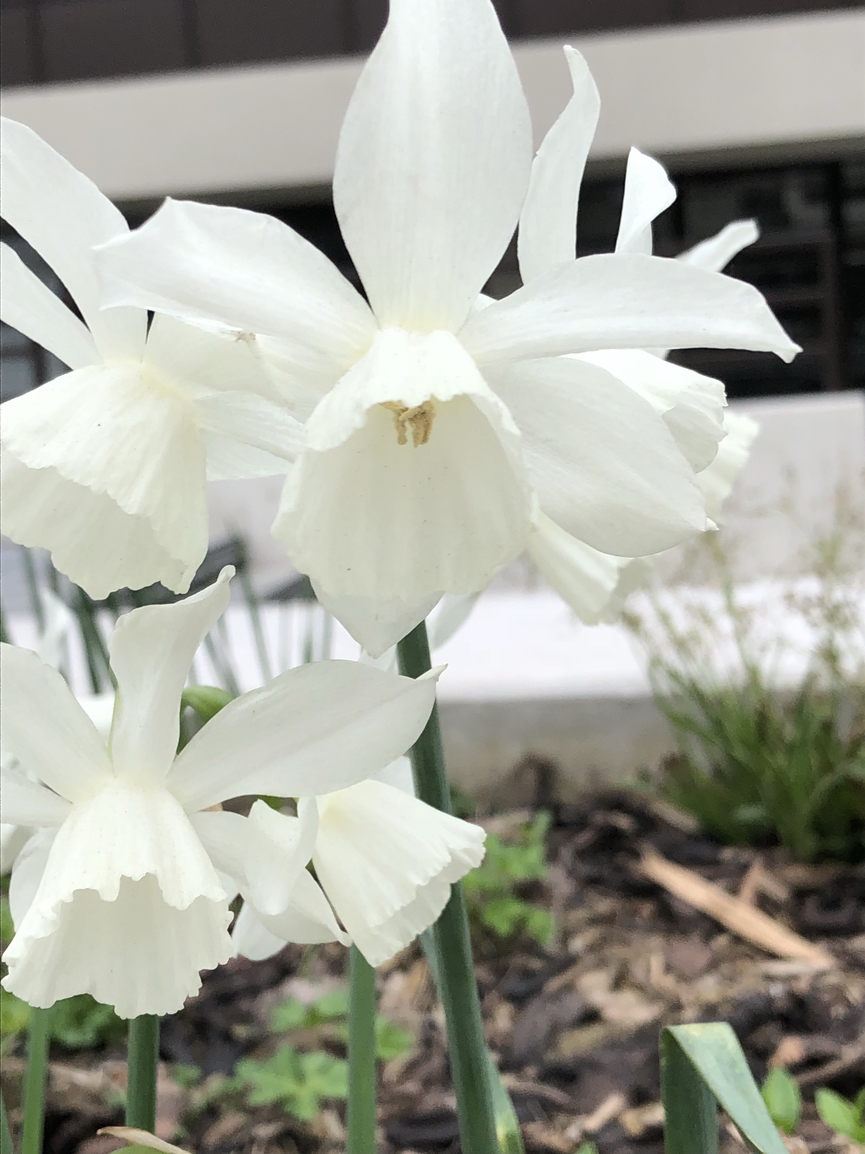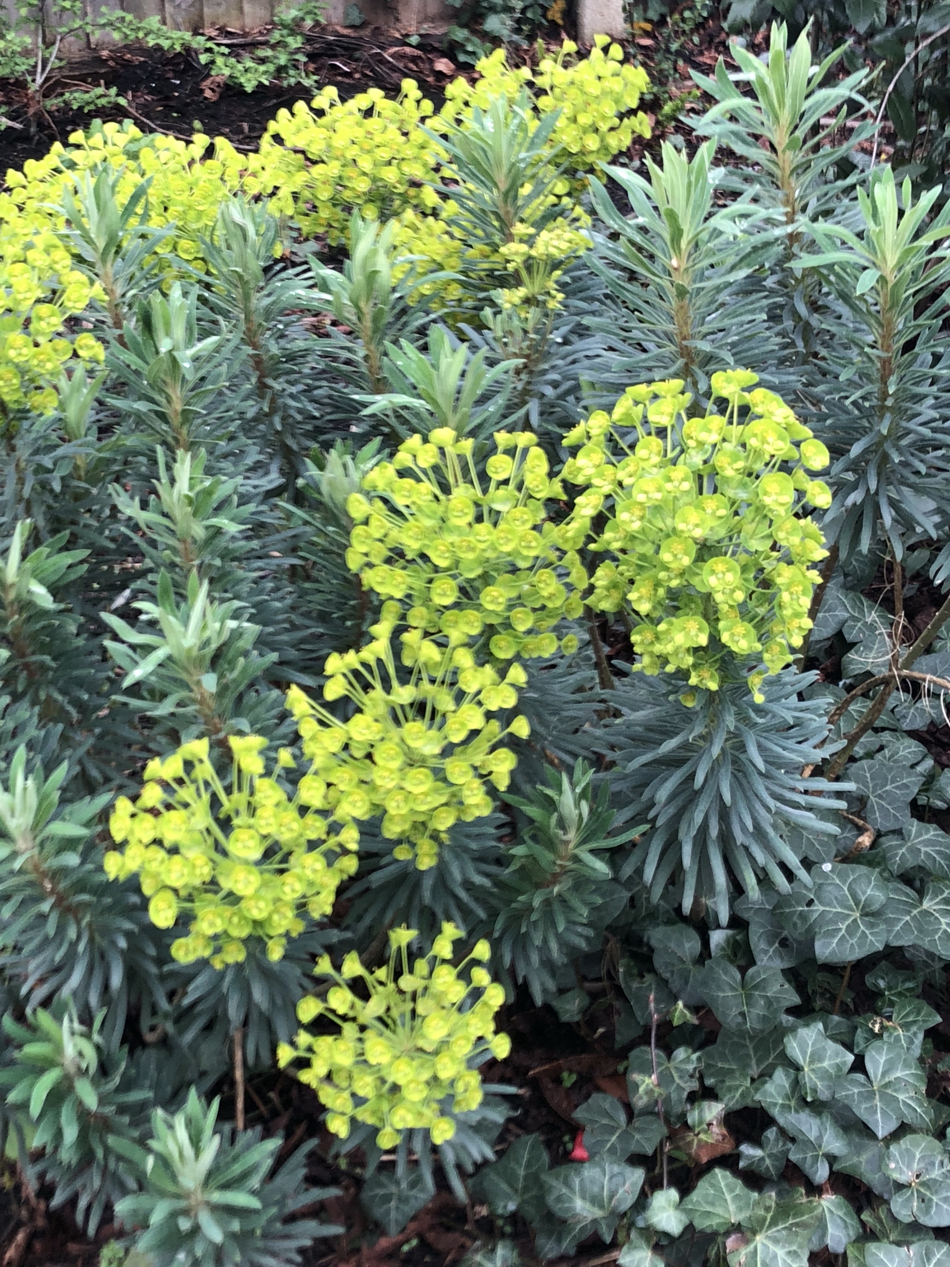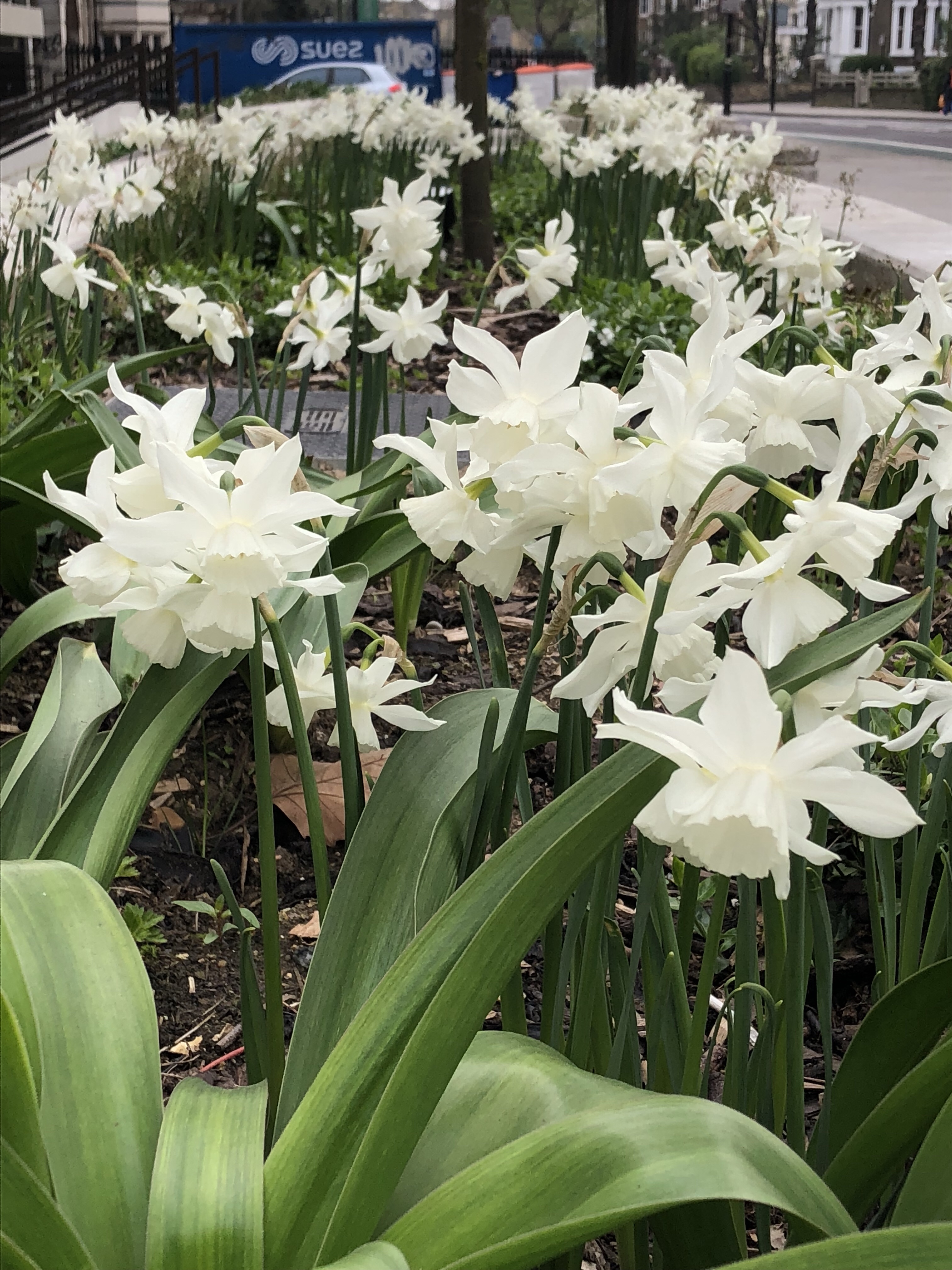The garden is tiny but is packed with pots. A large oblong planter of narcissi. Much later than usual and only now going over. Quite what I’ll put in there under lockdown though is yet to be determined. But will depend on what I can get Ooh. I’ve just remembered. I have another plant delivery. Salvias from Middletons.