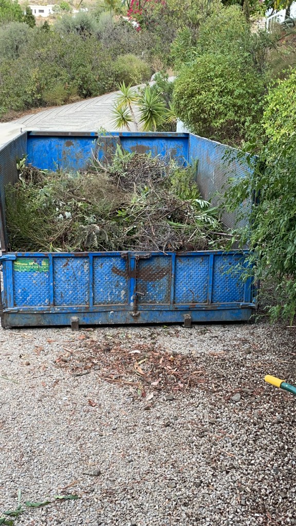 The gardener knew we were arriving and had been in and had cut the hedge. Had shaped the olive tree and had cut the roundabout that’s not a roundabout as well as the rear banks. None of which I am safe to do these days. I’d end up rolling down the hill to the main road and beyond. Not a pretty sight. Me. Not the banks as they look great.