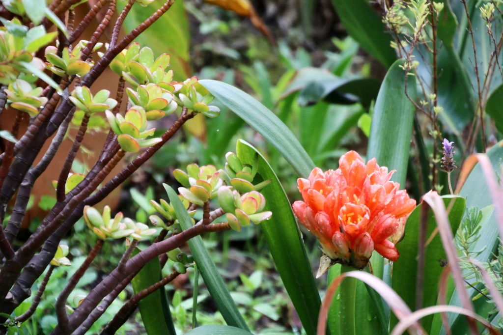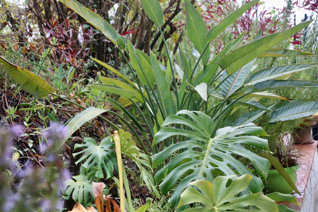 Another plant growing outside is a Swiss cheese plant. In Olden days – my childhood – popular indoor plants included the rubber plant , the Swiss cheese plant and a purple tradescantia. We have the latter two growing in the Mediterranean garden in Cómpeta. I never liked them indoors but they are tolerated in the garden. Unlike the clivia which was an indoor plant in my office which I loved in a pot so I and am happy to have a dozen in the gate bed.