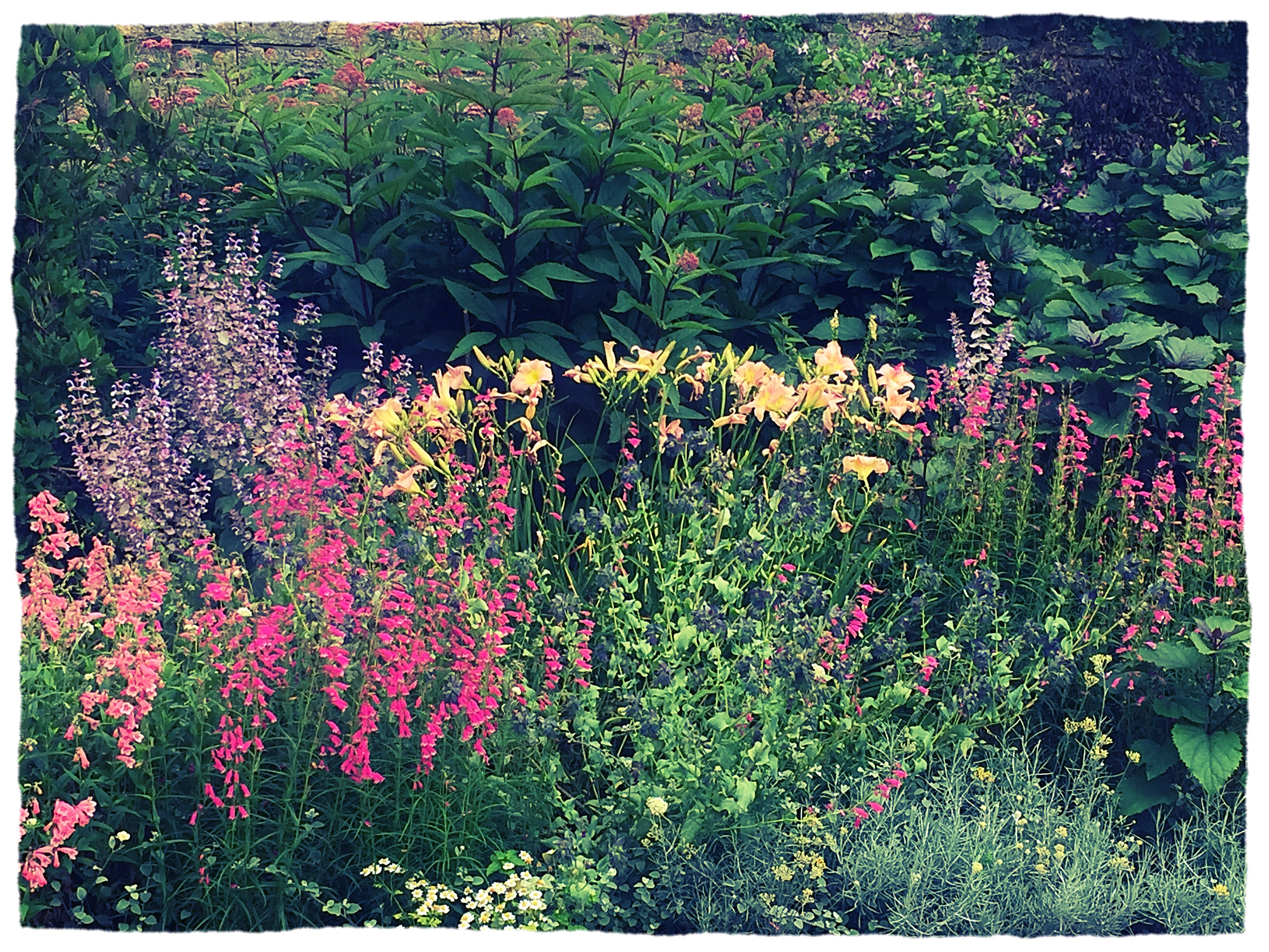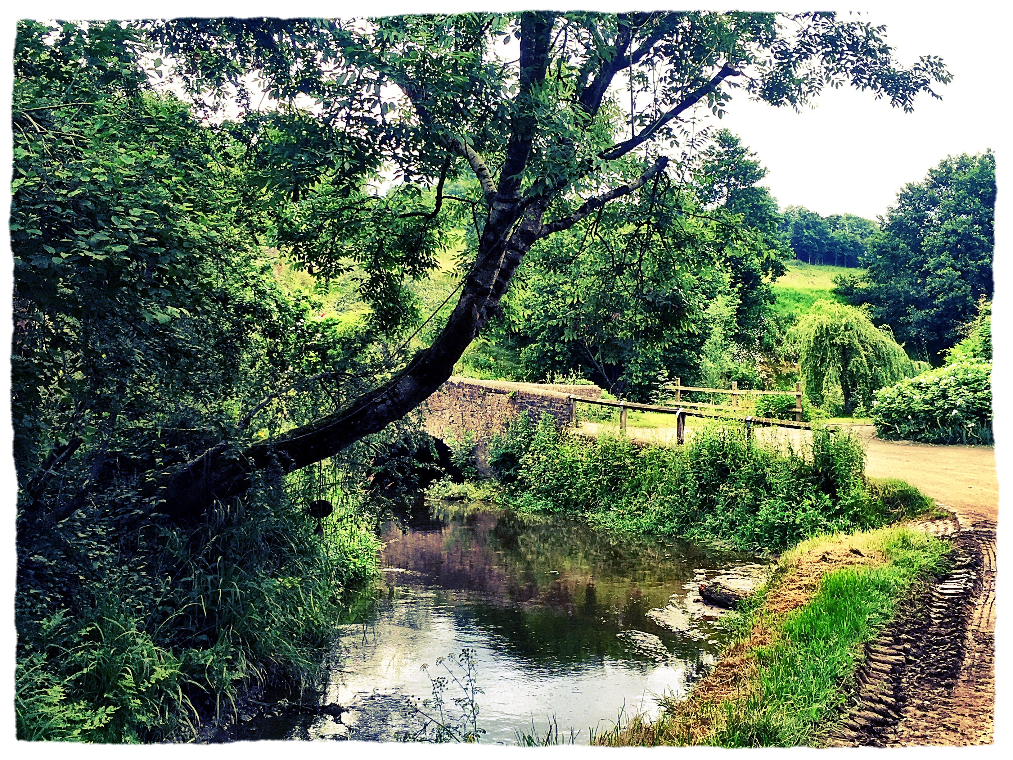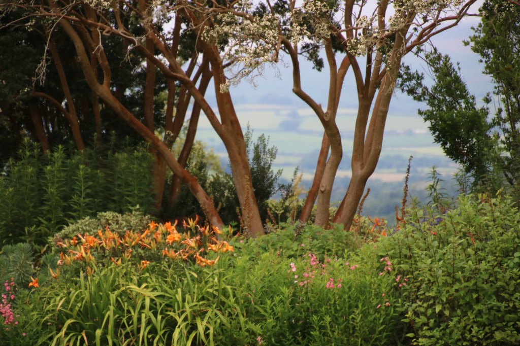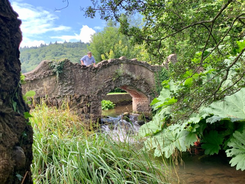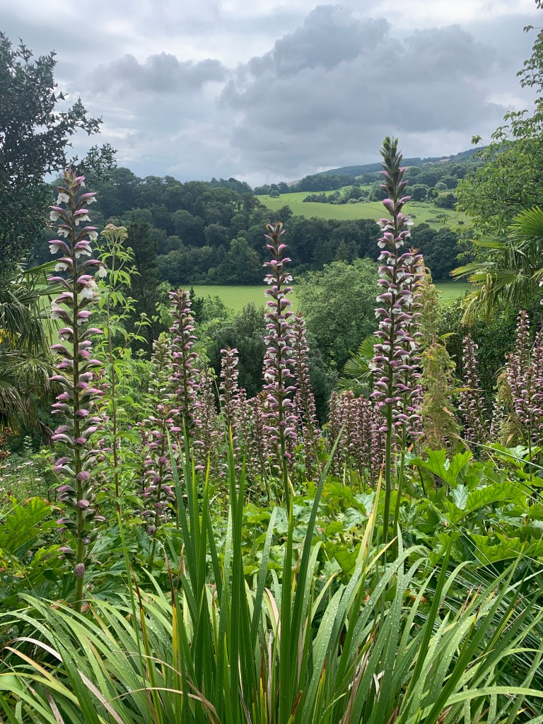 But it was outside that was a delight. The gardens have a tropical feel. Large banana. Massive ferns on the riverside walk to the Mill. Wide sweeping perennial borders. Acanthus as far as the eye can see. Enourmous gunnera by the gorgeous bridge. Ian has always wanted a gunnera. Have a look at that one _ he’s changed his mind.