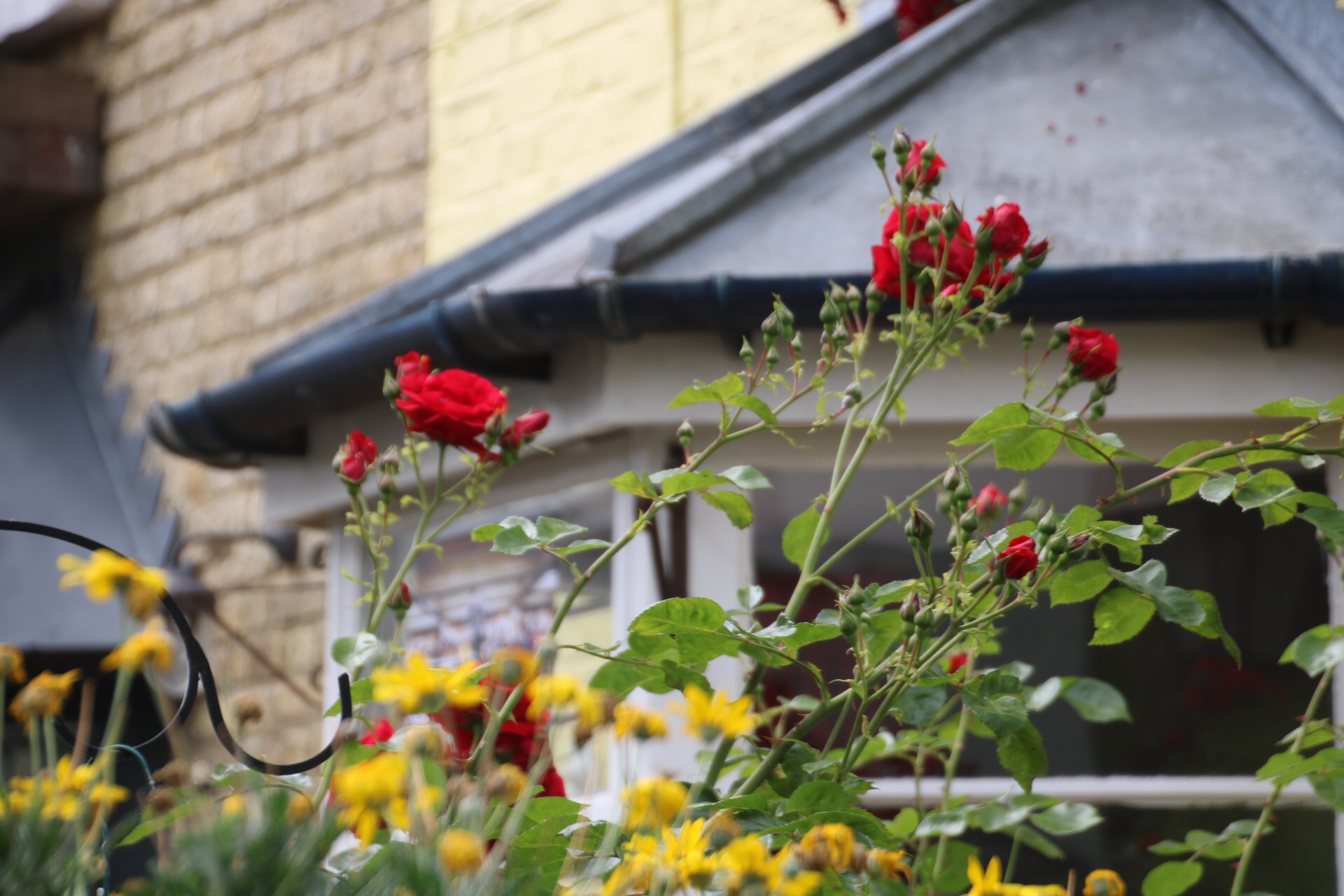 The window box combination are all of a peony type which I particularly like. When they open fully they are all big, blousy and a bit of a show off. Belle Époque, Uncle Tom, Angelique and Copper Image. In lockdown and because we have been here more and on the front garden the comments have been brilliant. Except the comment by one passing couple. Lovely roses he said as he continued walking. I didn’t get the chance to correct him.